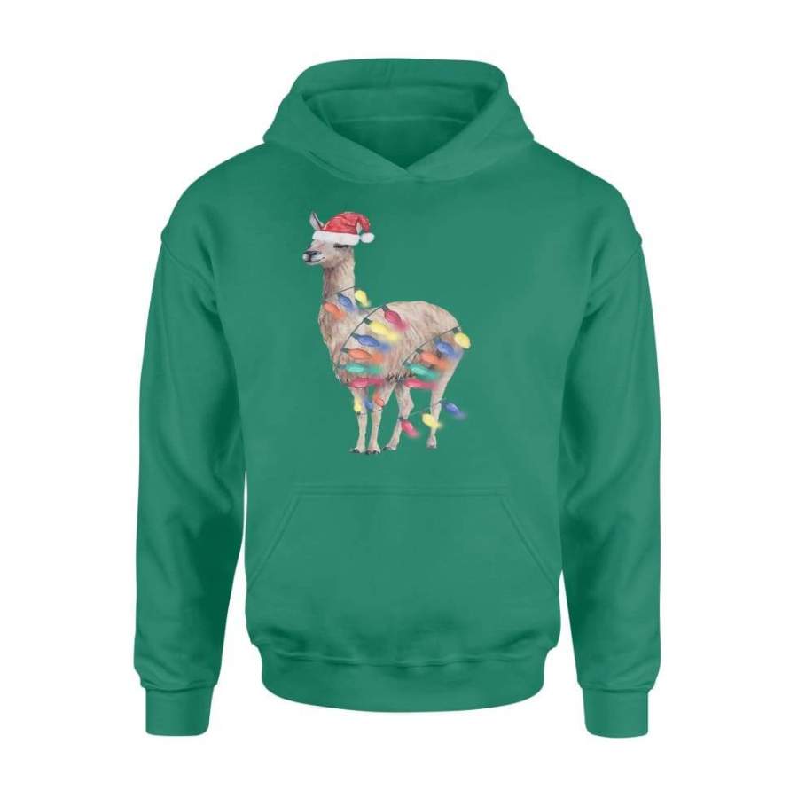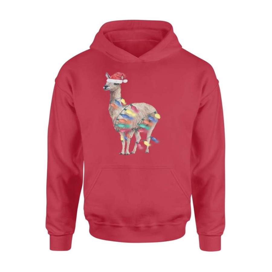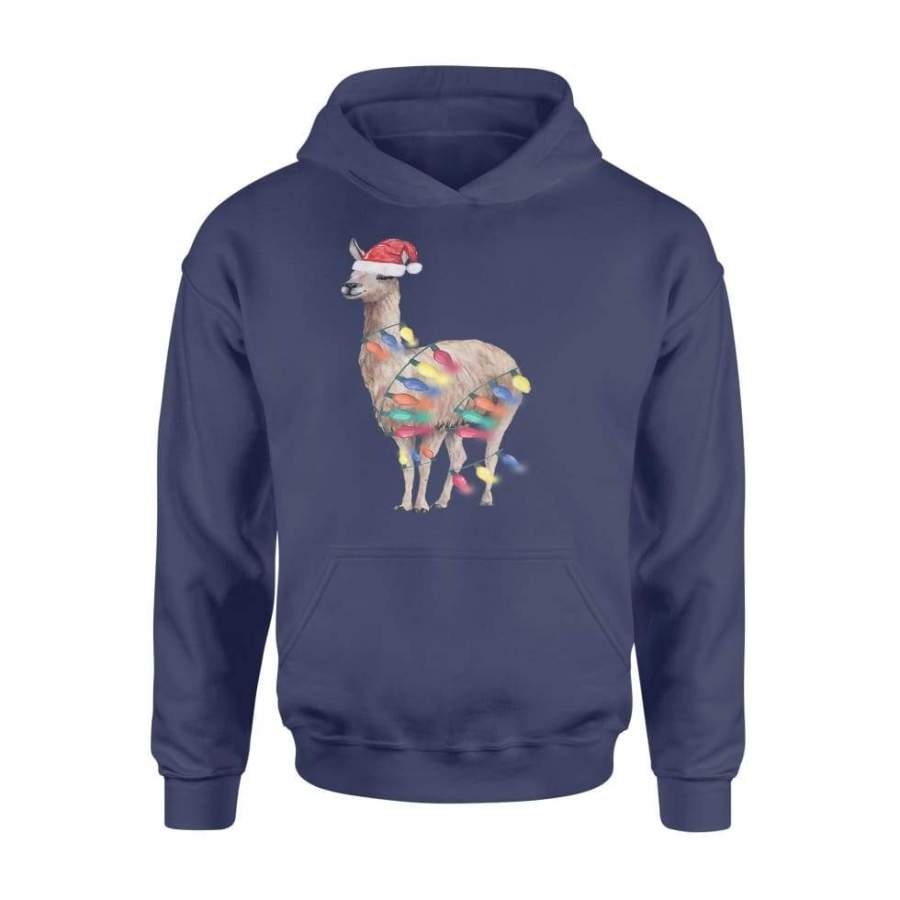 Santa Llama Christmas Lights Llama Lover Christmas Gift – Standard Hoodie
