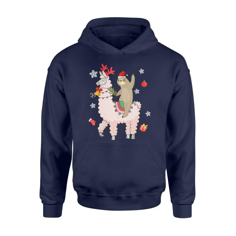 Santa Sloth Riding Llama Reindeer Christmas T-shirt 2 – Standard Hoodie