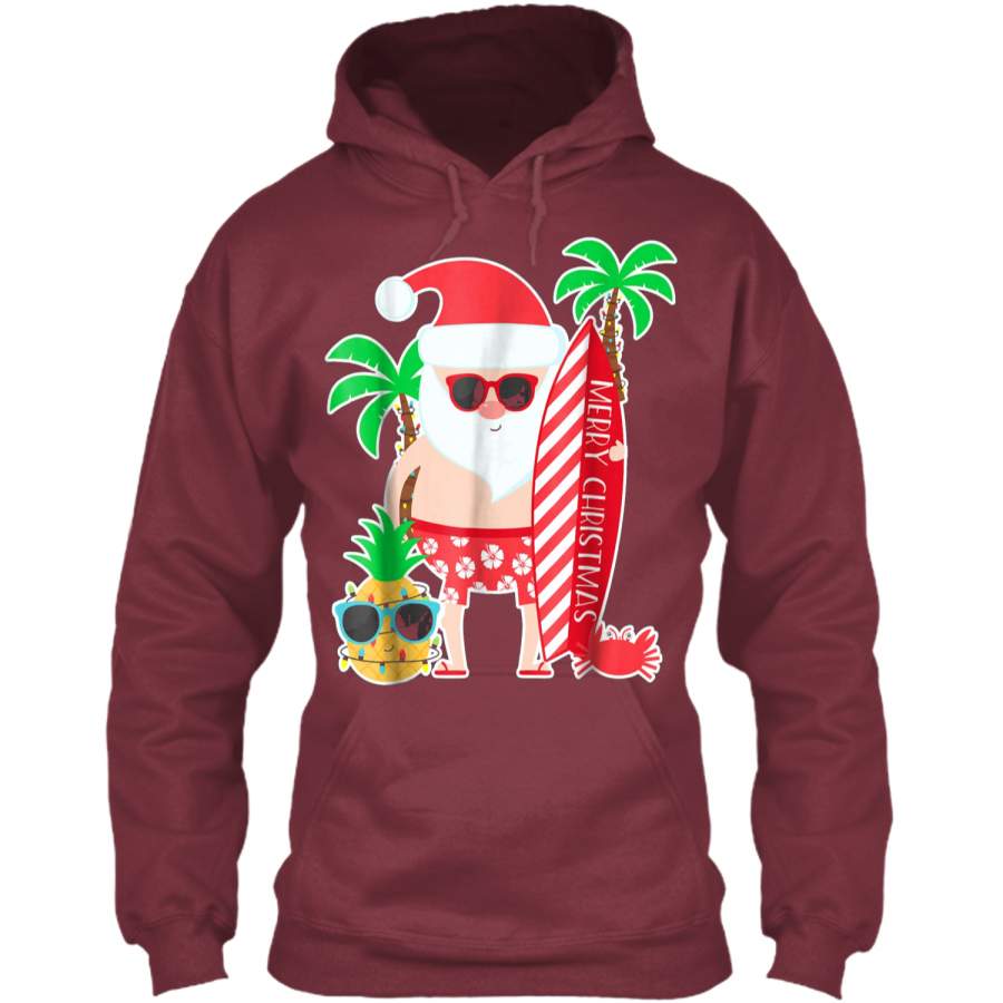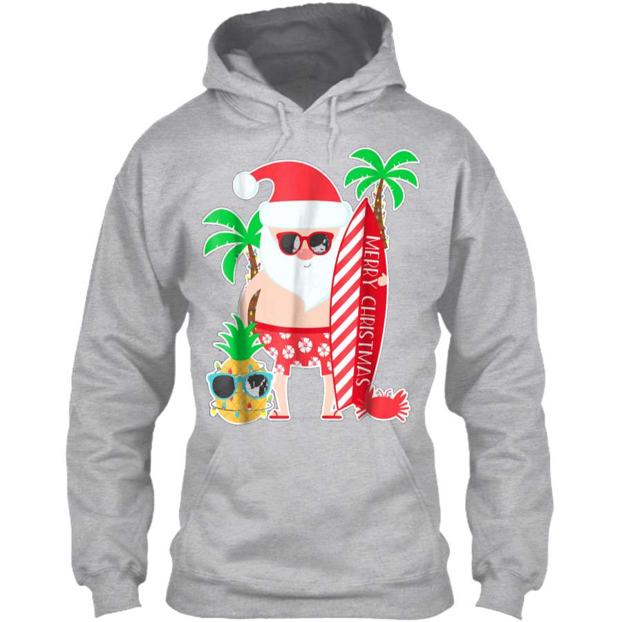 Santa Surfing Hawaiian Gift for Christmas Family Trip Pullover Hoodie 8 oz
