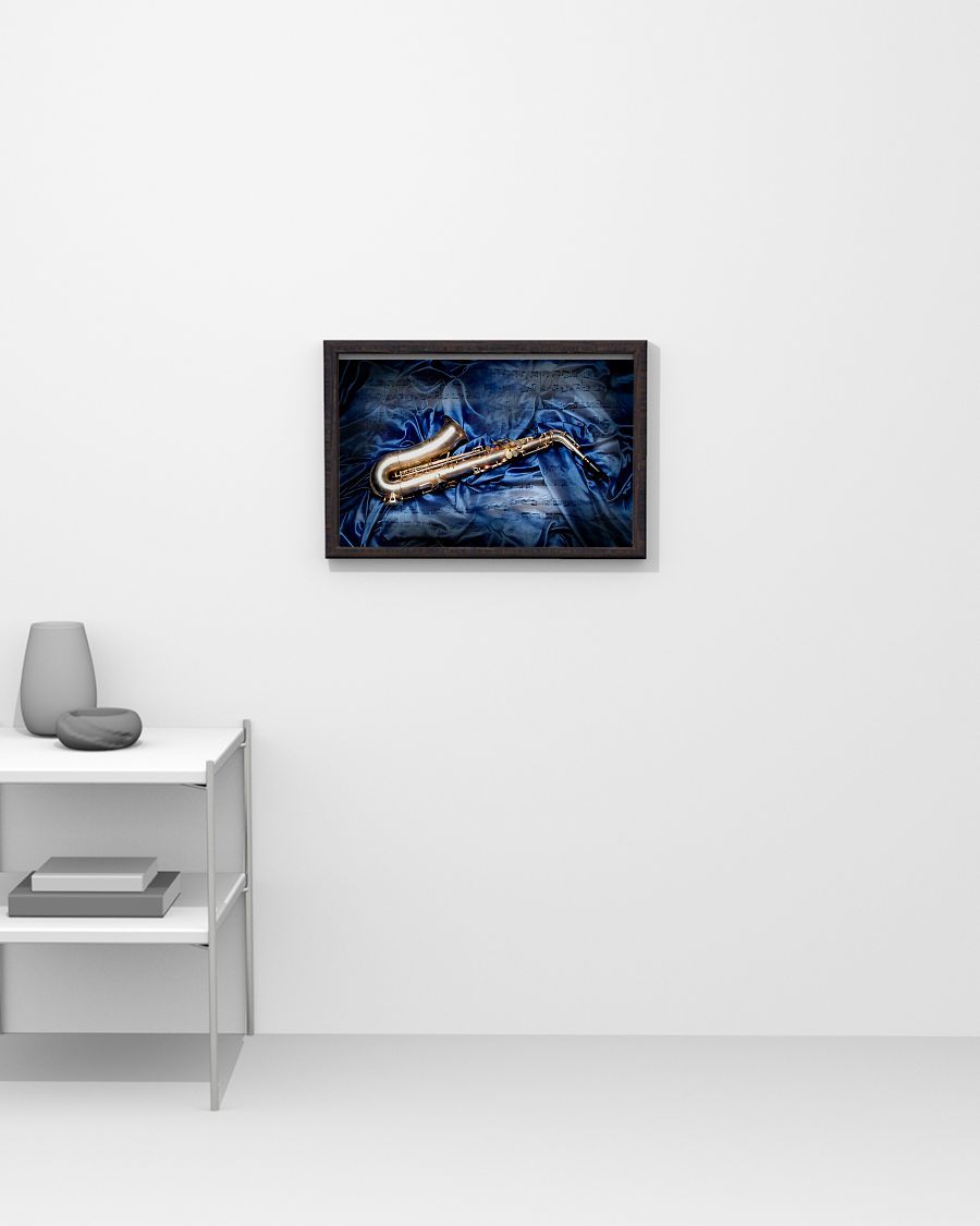 Saxophone In Blue Horizontal Canvas And Poster | Wall Decor Visual Art