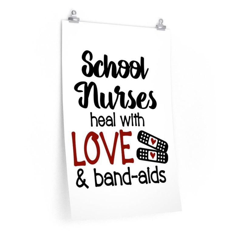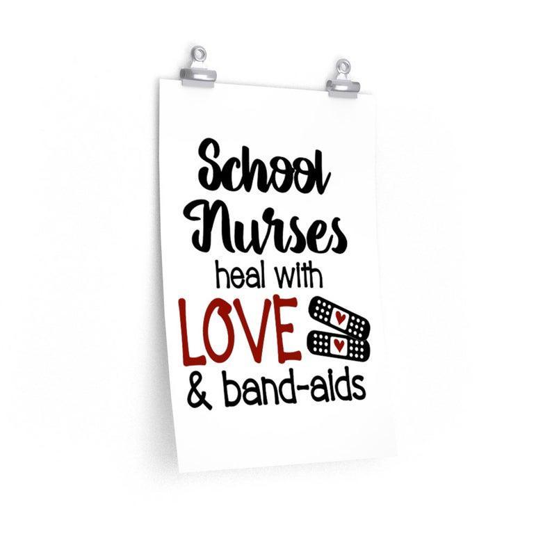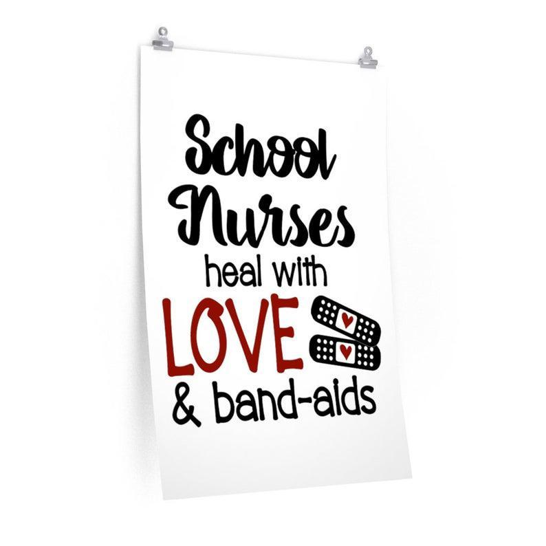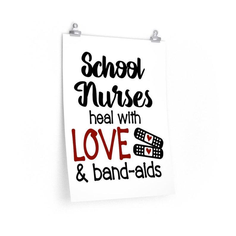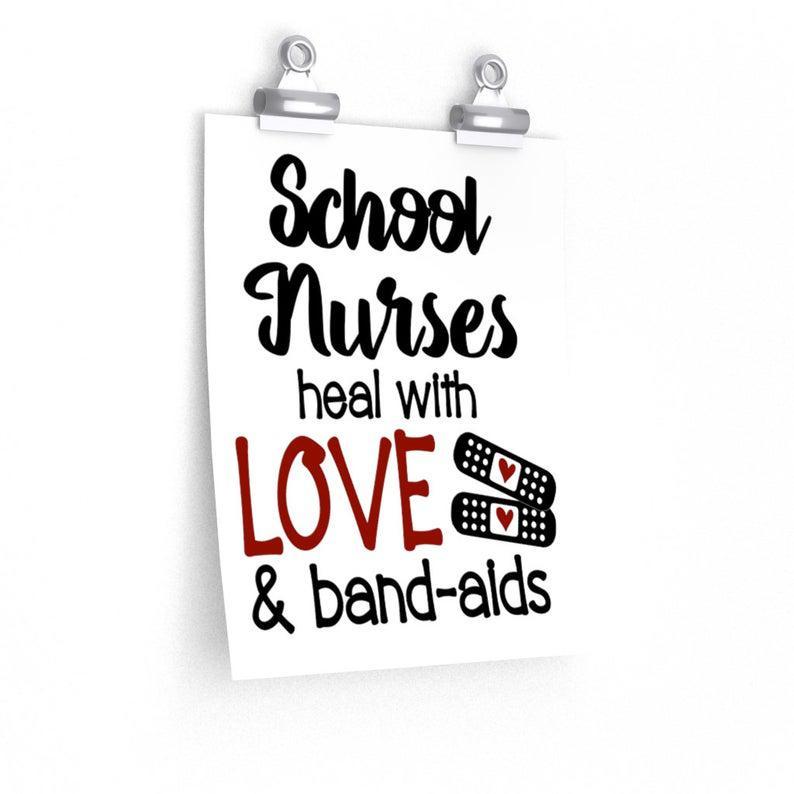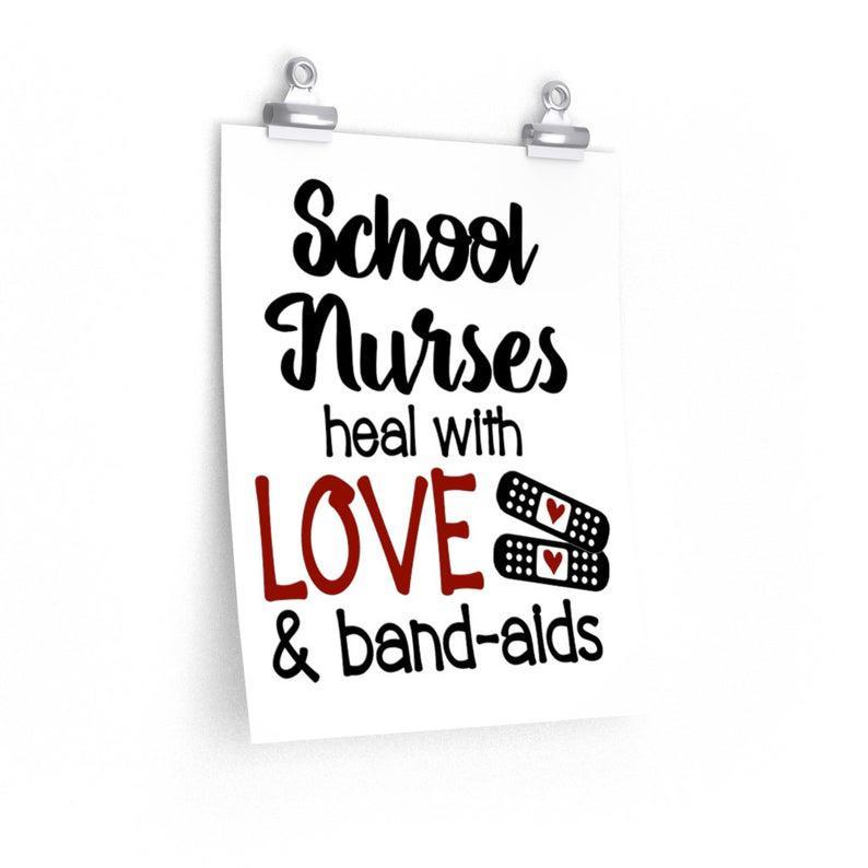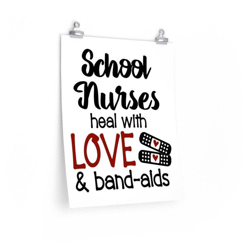School Nurses Heal With Love And Bandaids Poster, School Nurse Print, School Nurse’S Office Decor