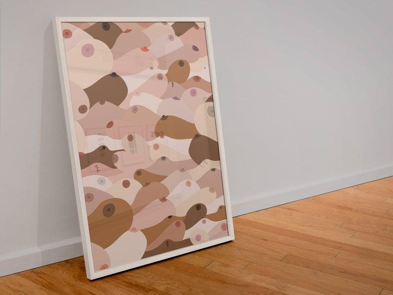 Sea Of Boobs | Feminist Art Poster | Bathroom Wall Art | Body Confidence | Breast Surgery