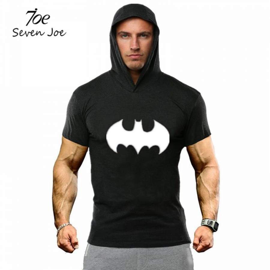 Seven Joe.New Men GYMS Hoodie T-Shirt Cotton short Sleeve fitness Clothing Bodybuilding Sportswear workout hooded T shirt