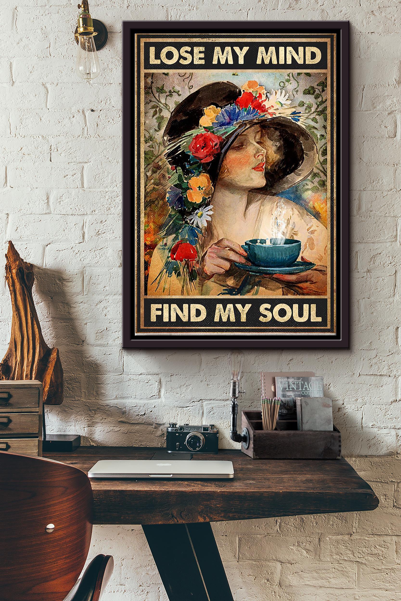 Sipping Tea To Lose My Mind And Find My Soul Girl With Flowers Poster Framed Matte Canvas
