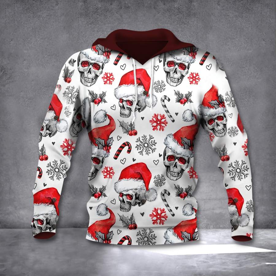 Skull Merry Christmas Hoodie Christmas Skull Santa Hat Hoodie 3D Gift Ideas For Winter