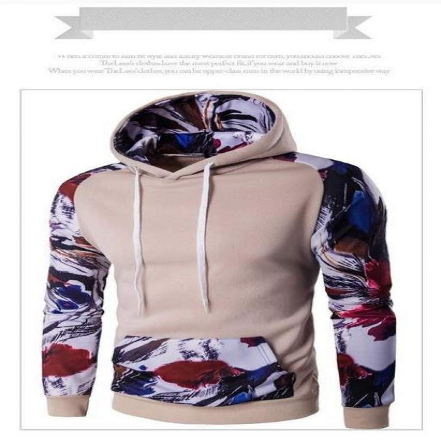 Slim Hoodies Men Sweatshirt Long Sleeve Pullover Hooded Sportswear Male Patchwork Fleece Tracksuit