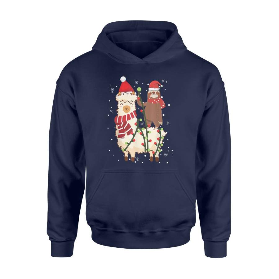 Sloth And Llama Christmas T Shirt Sloth Riding Llama Xmas T-Shirt – Standard Hoodie