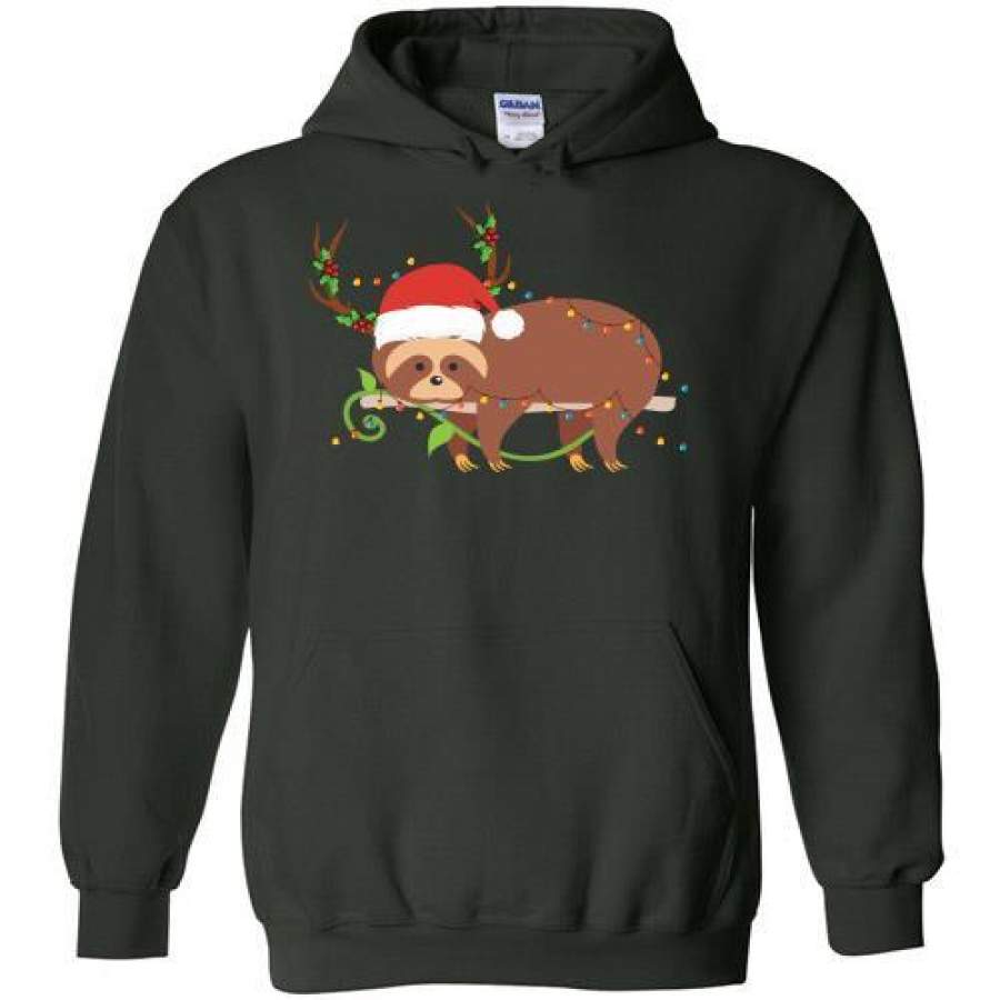 Sloth Santa Reindeer Christmas Hoodie