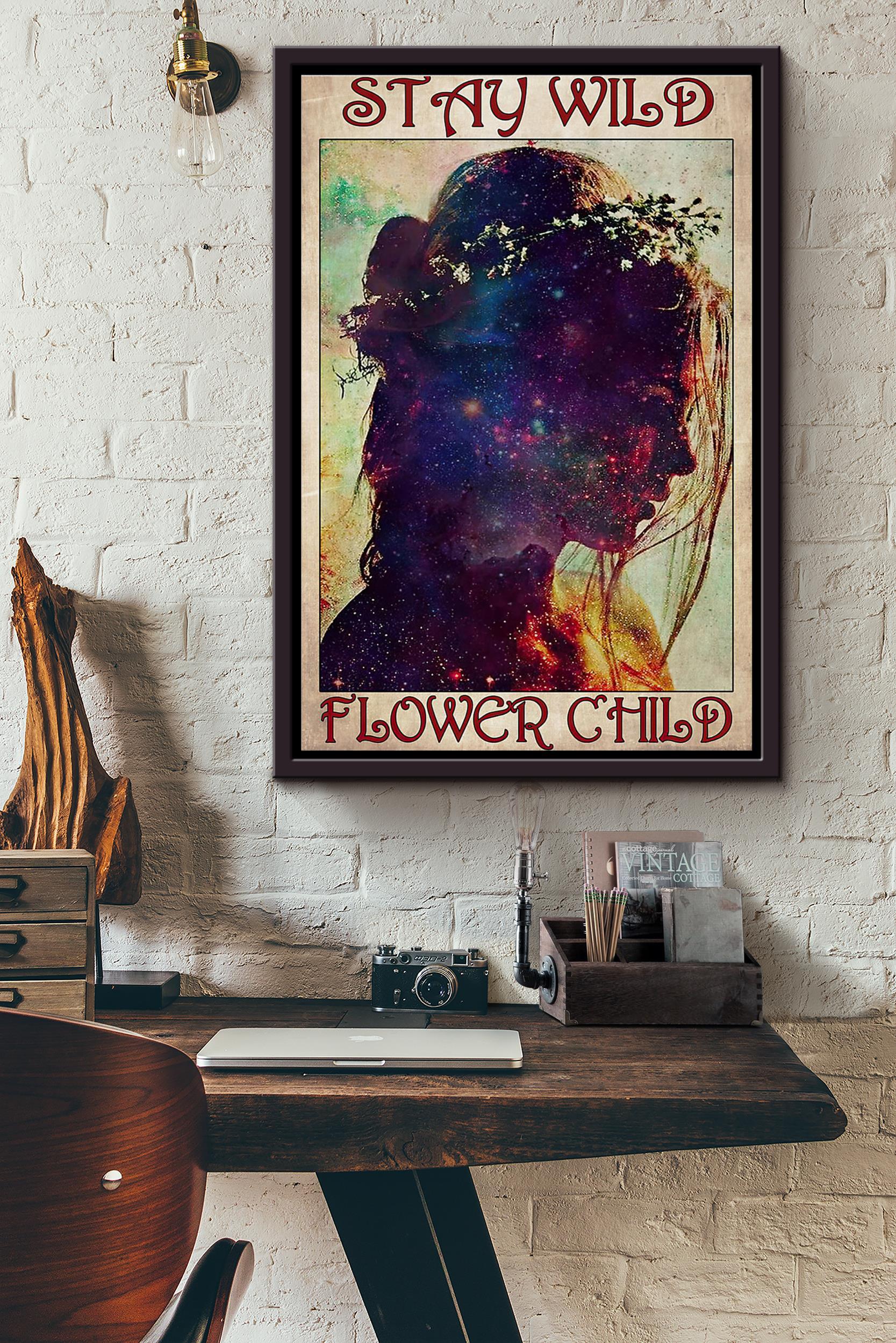 Stay Wild Flower Child Galaxy Body Poster Framed Matte Canvas