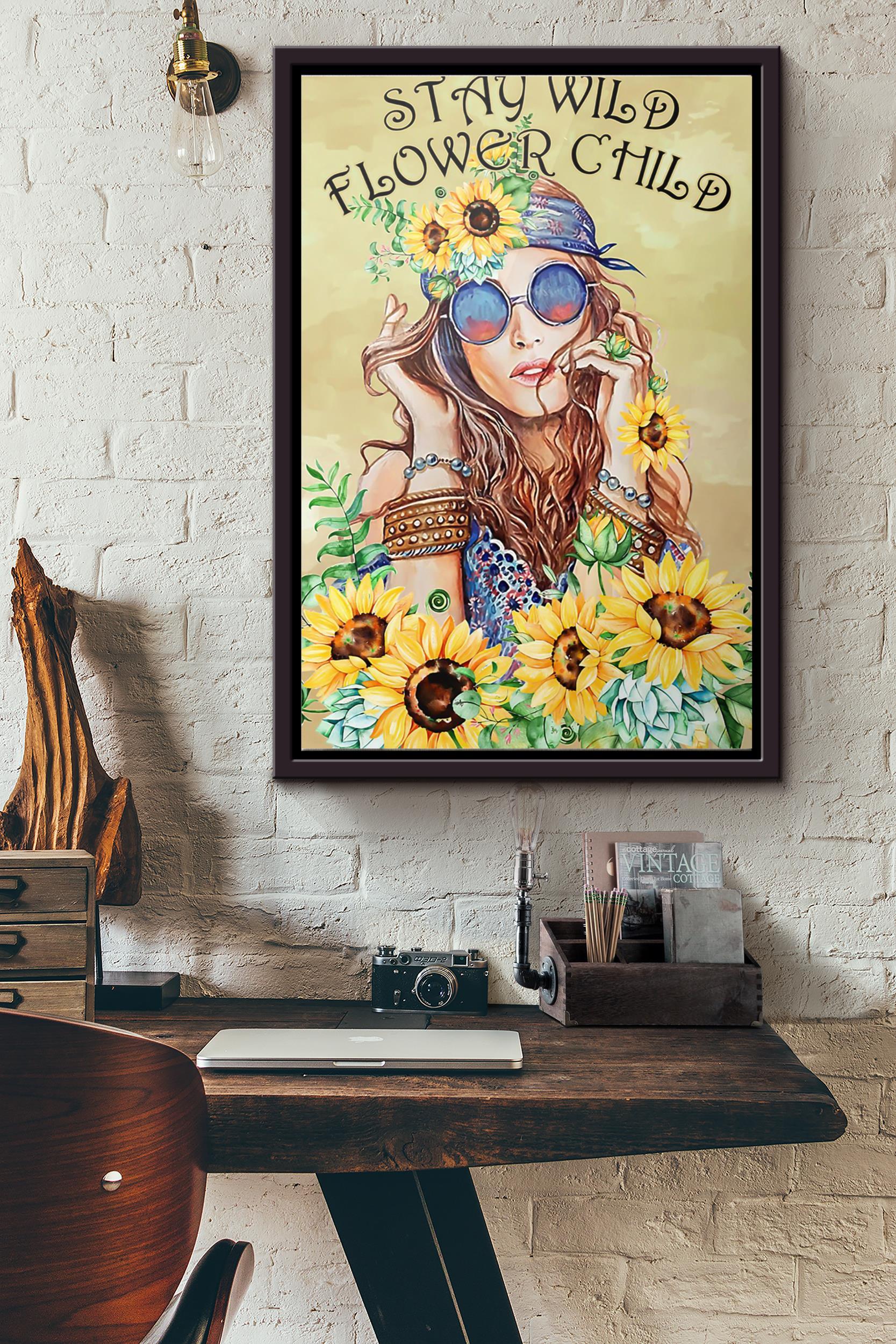 Stay Wild Flower Child Poster Framed Matte Canvas