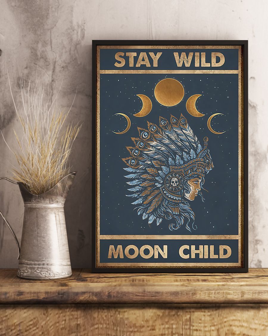Stay Wild Moon Child Native American Vertical Canvas And Poster | Wall Decor Visual Art