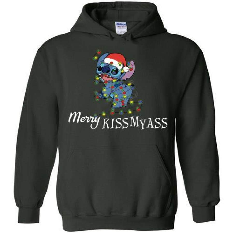 Stitch Merry Kissmyass light Christmas Hoodie