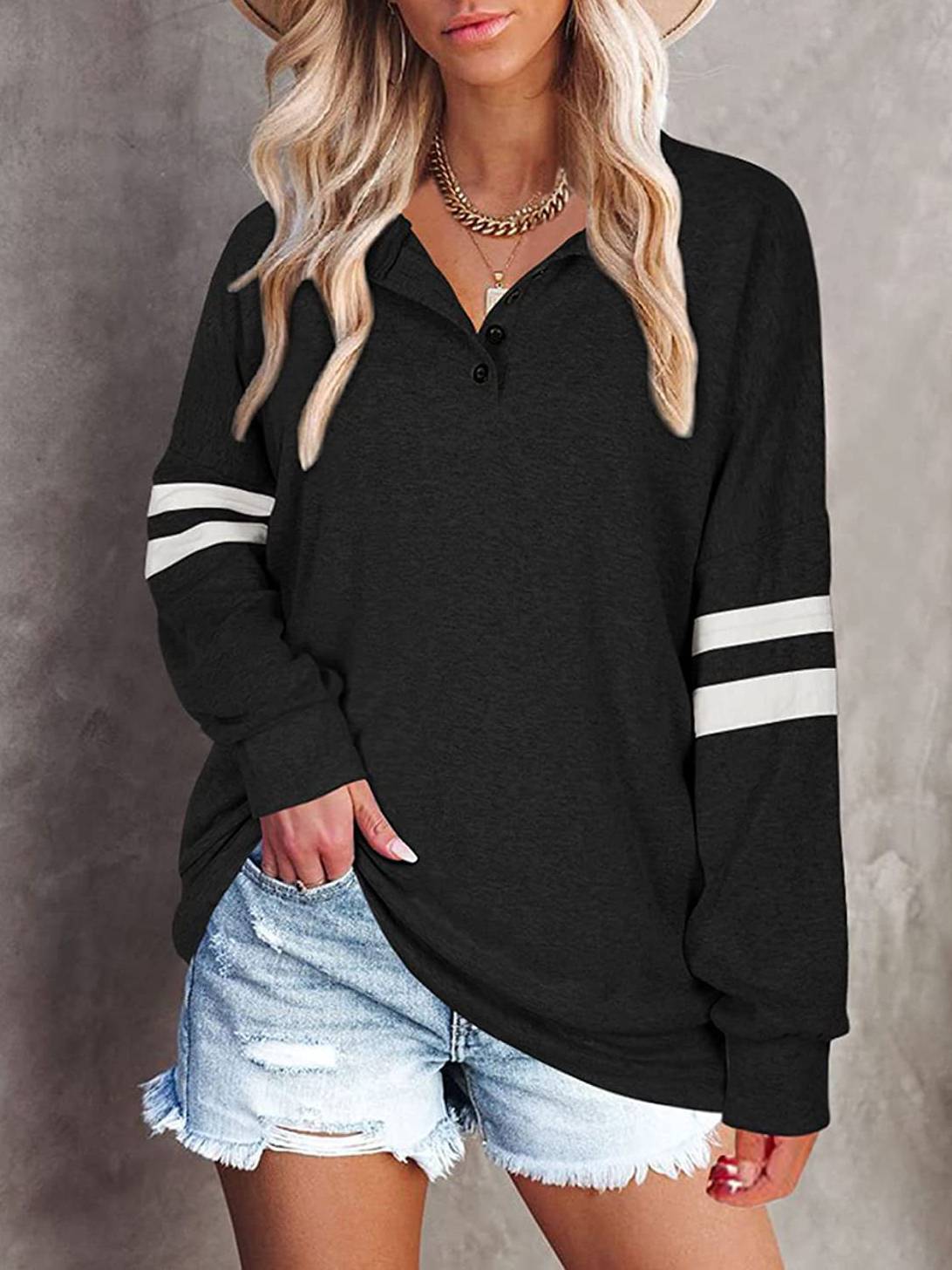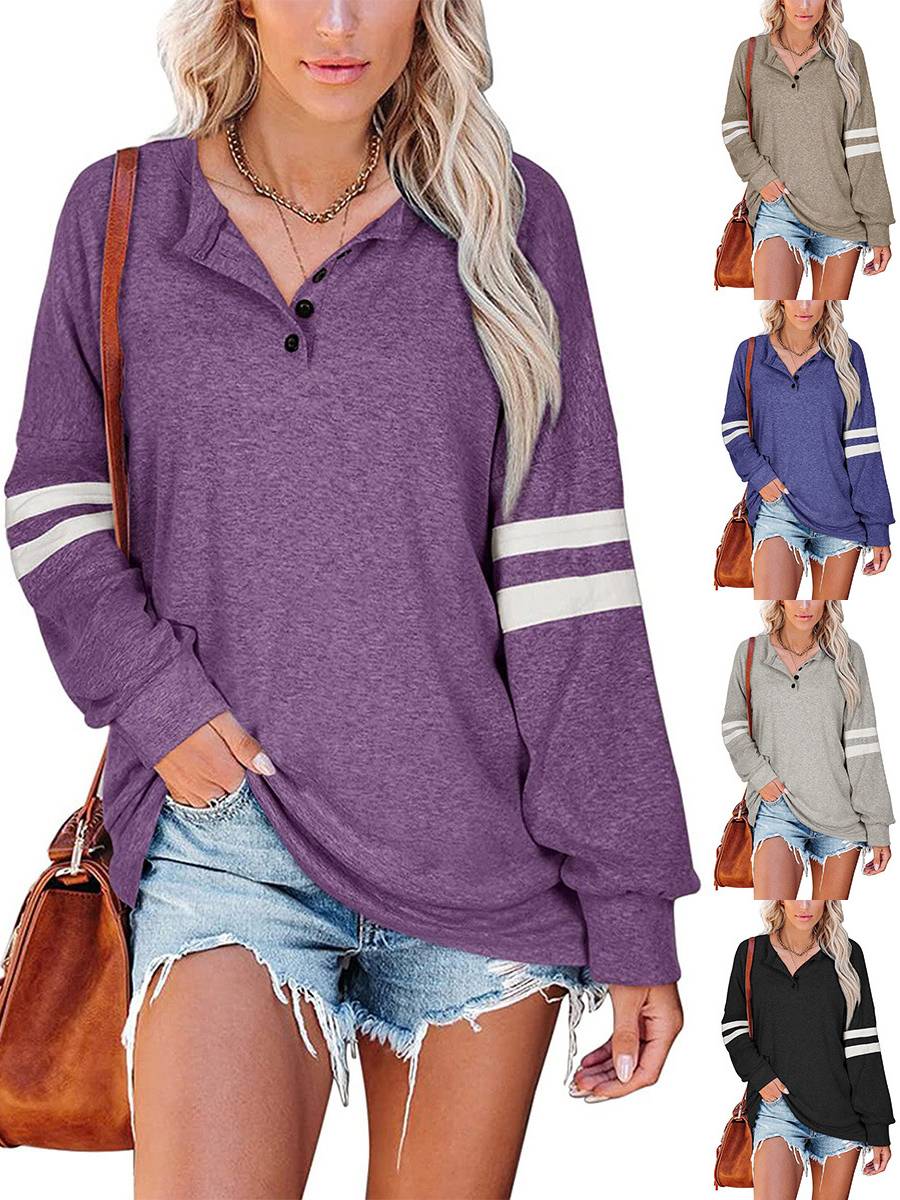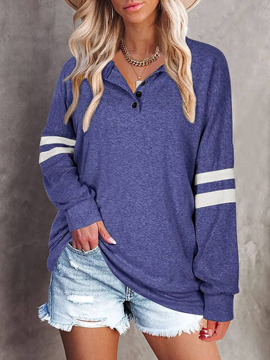 Striped Print Women’S Long Sleeve V-Neck Top