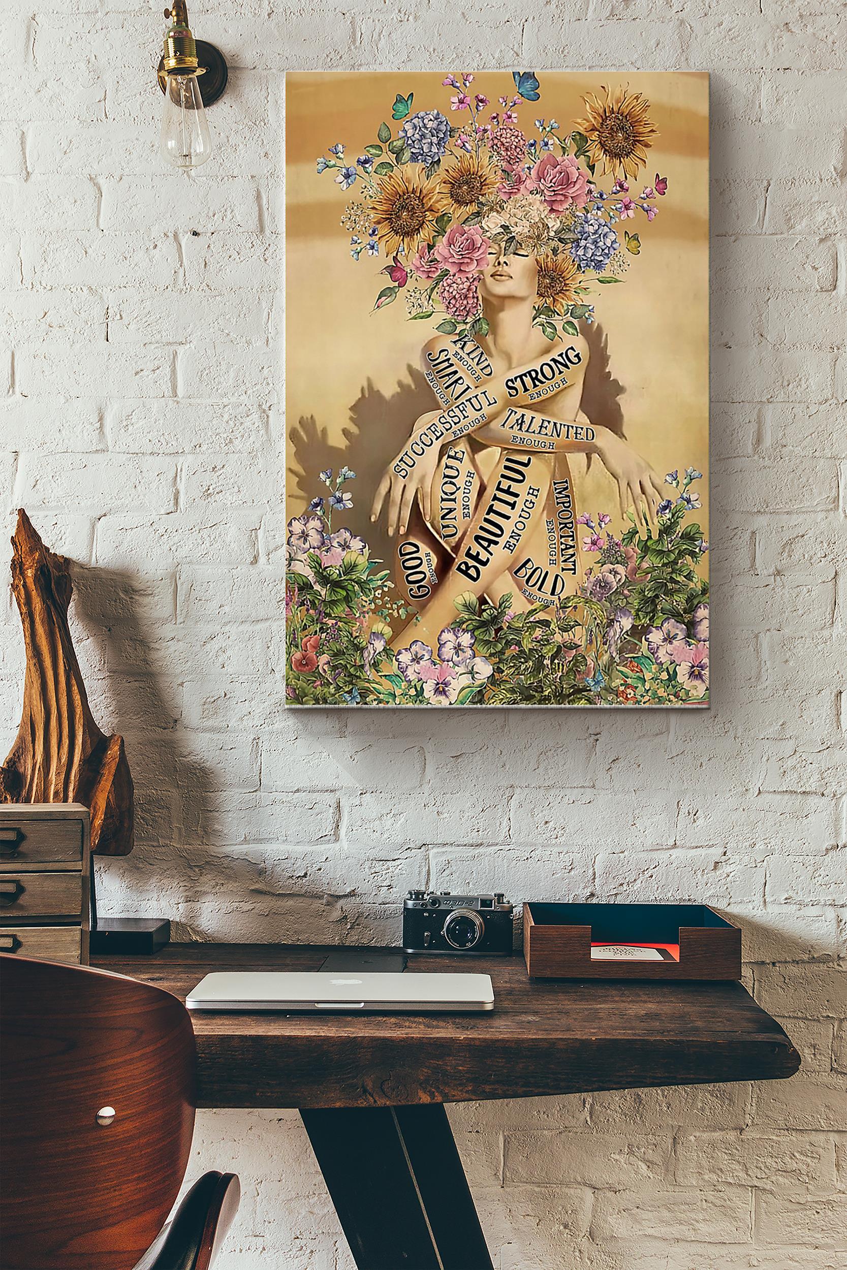 Strong Girl With Flower Head Poster Wrapped Canvas