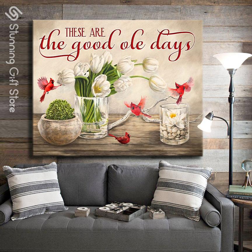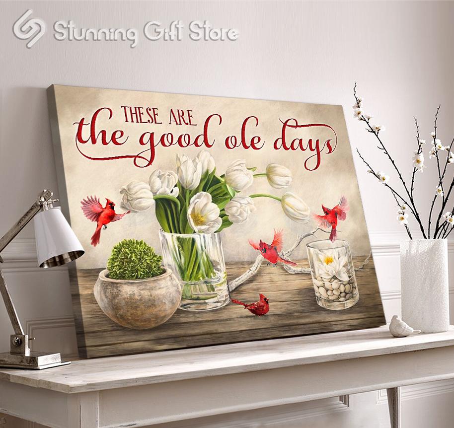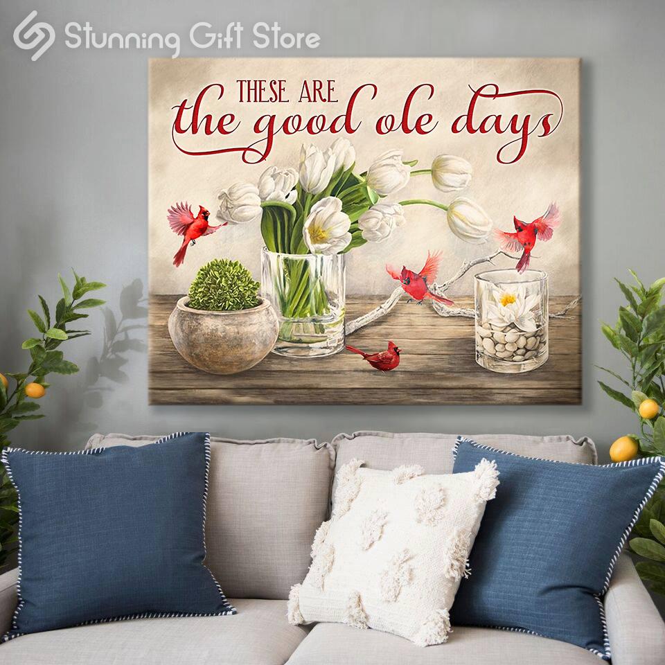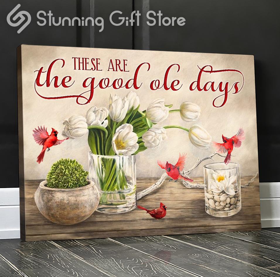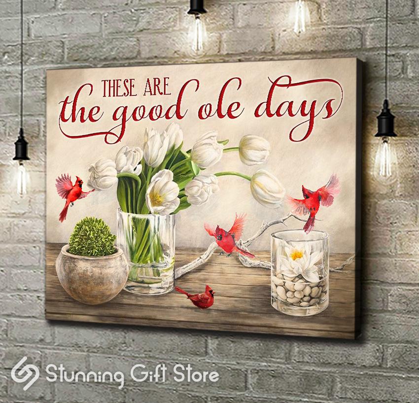 Stunning Gift Canvas Print Wall Art These Are The Good Ole Day Cardinal Tulip Flower Sign