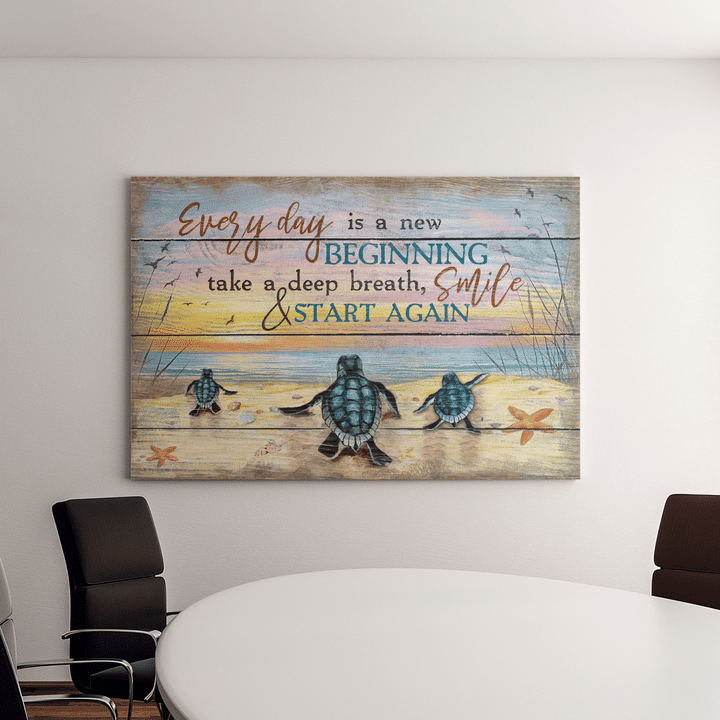 Sunset On The Beach Turtle Everyday Is A New Beginning Landscape Poster & Canvas Gift For Friend Family Decor Home Decor Wall Art Visual Art