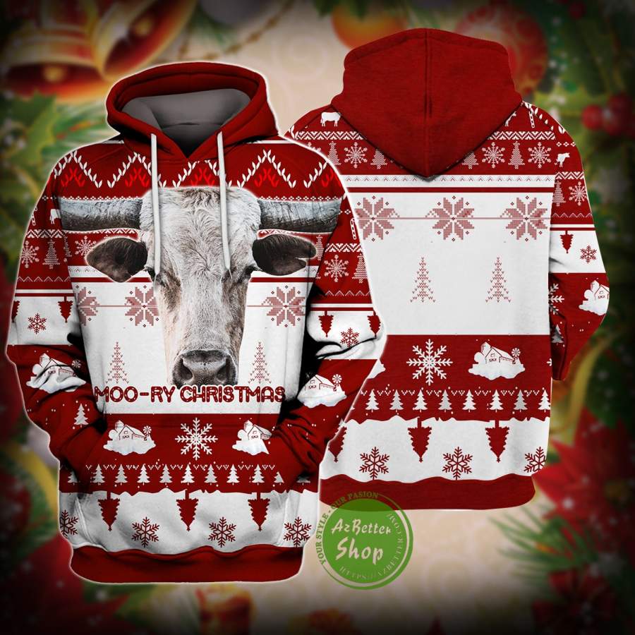 Texas Longhorn Moo-Ry Christmas 3D Hoodie
