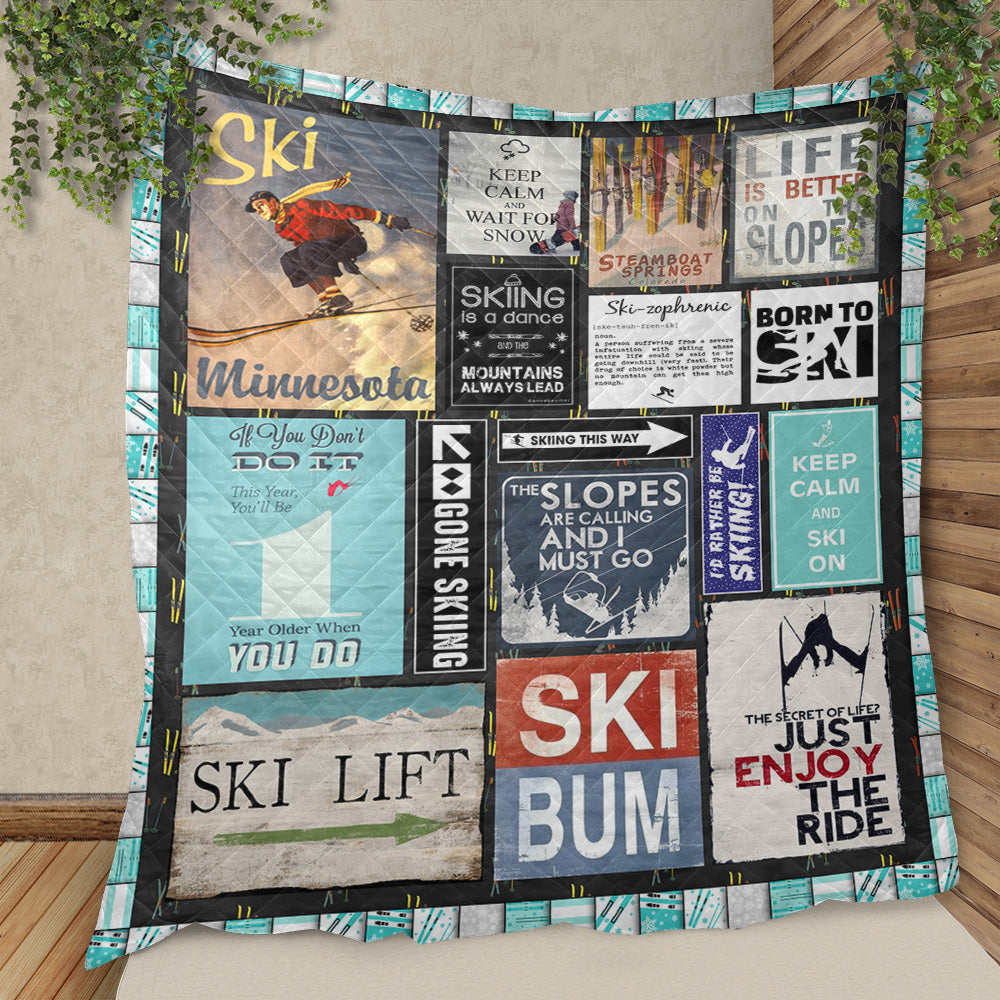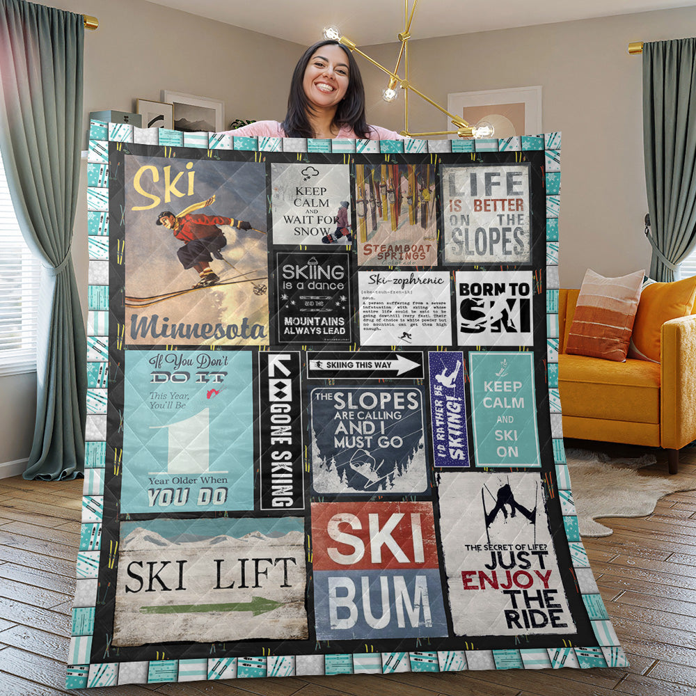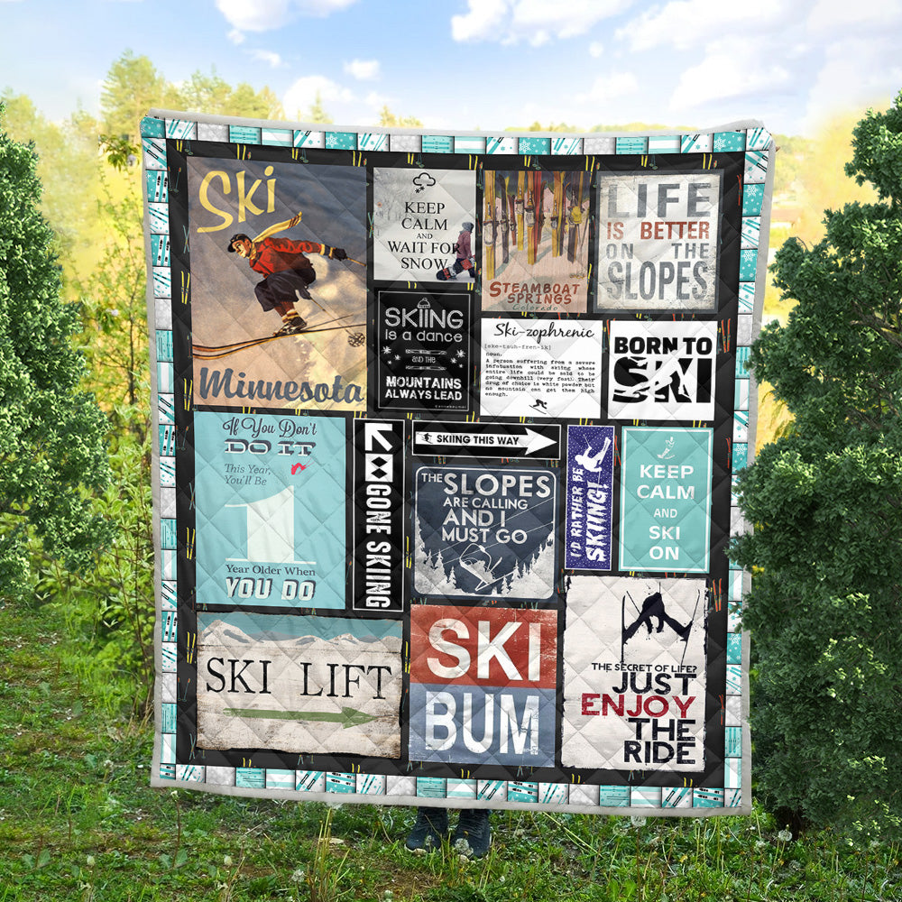 The Slopes Are Calling Skiing 9Basic Quilted Blanket