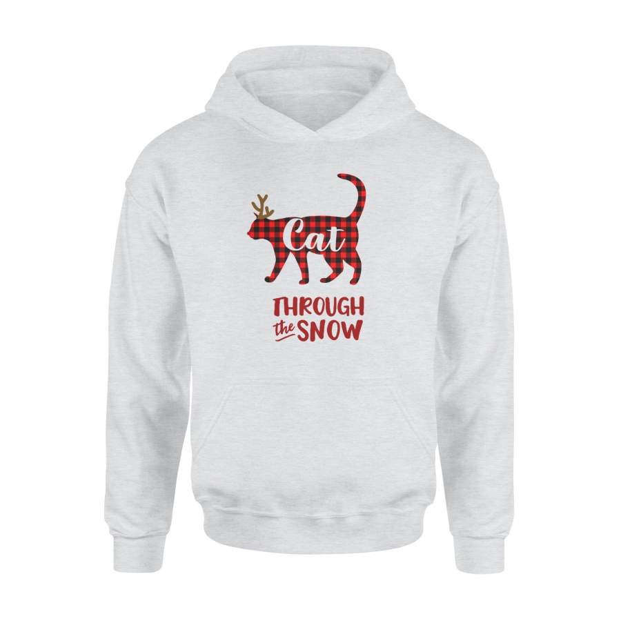 Through The Snow Christmas Cat Red Plaid Hoodie