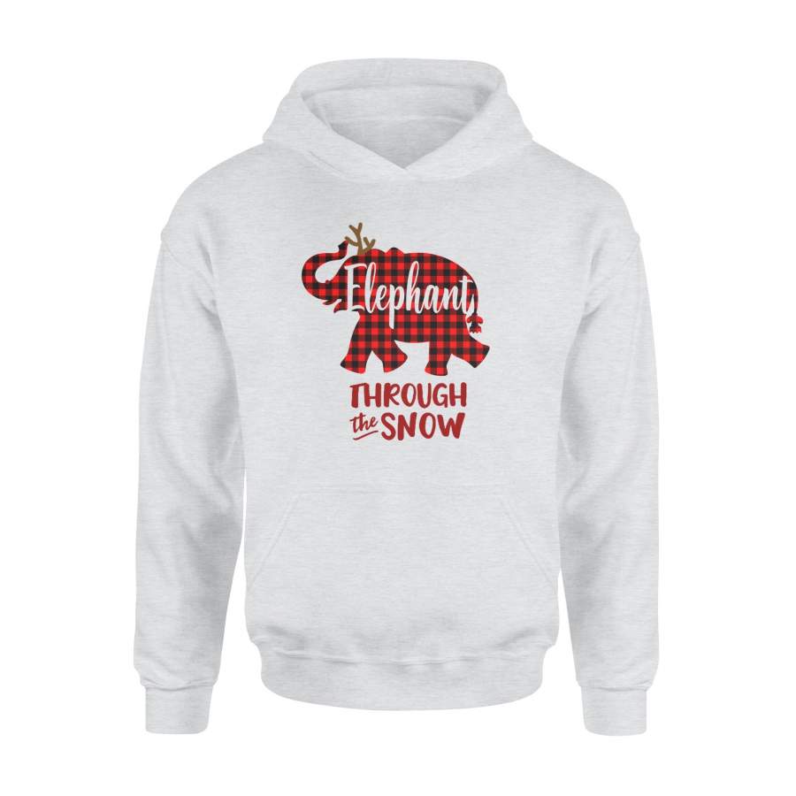Through The Snow Christmas Elephant Red Plaid Hoodie