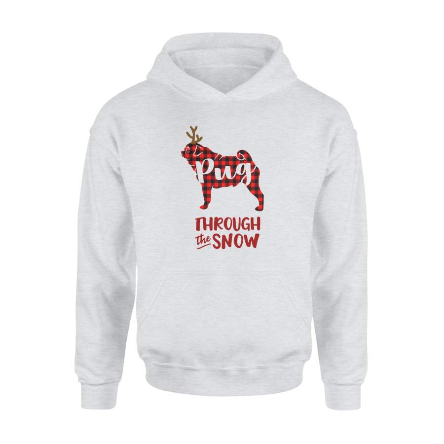 Through The Snow Christmas Pug Red Plaid Hoodie