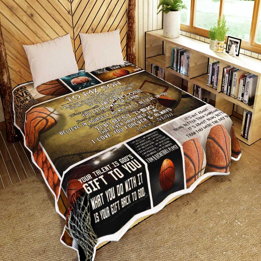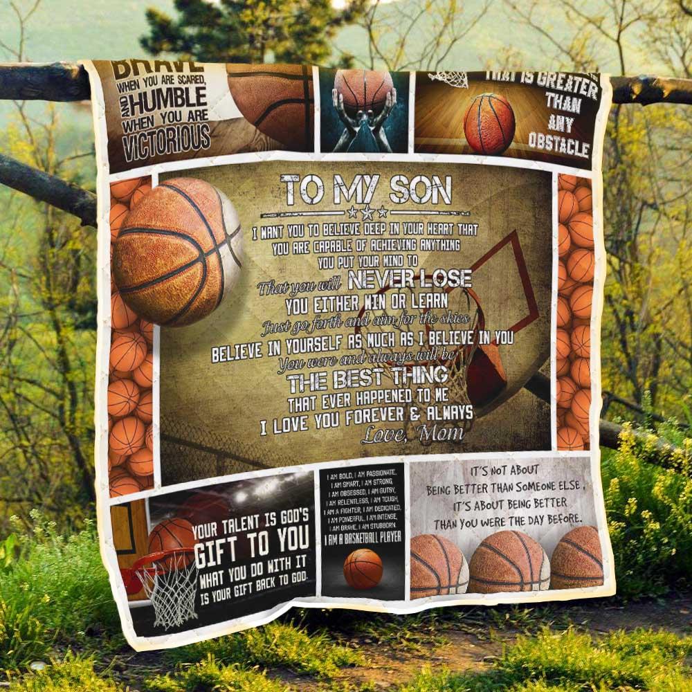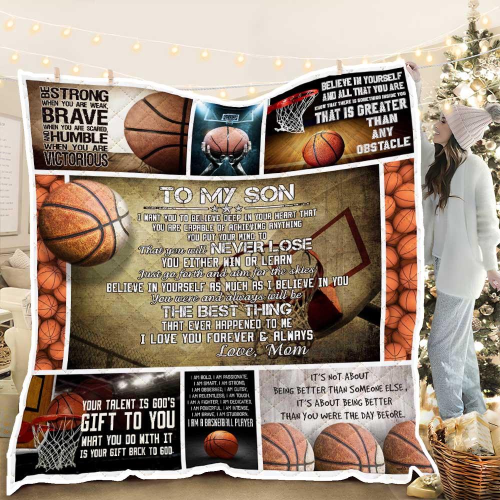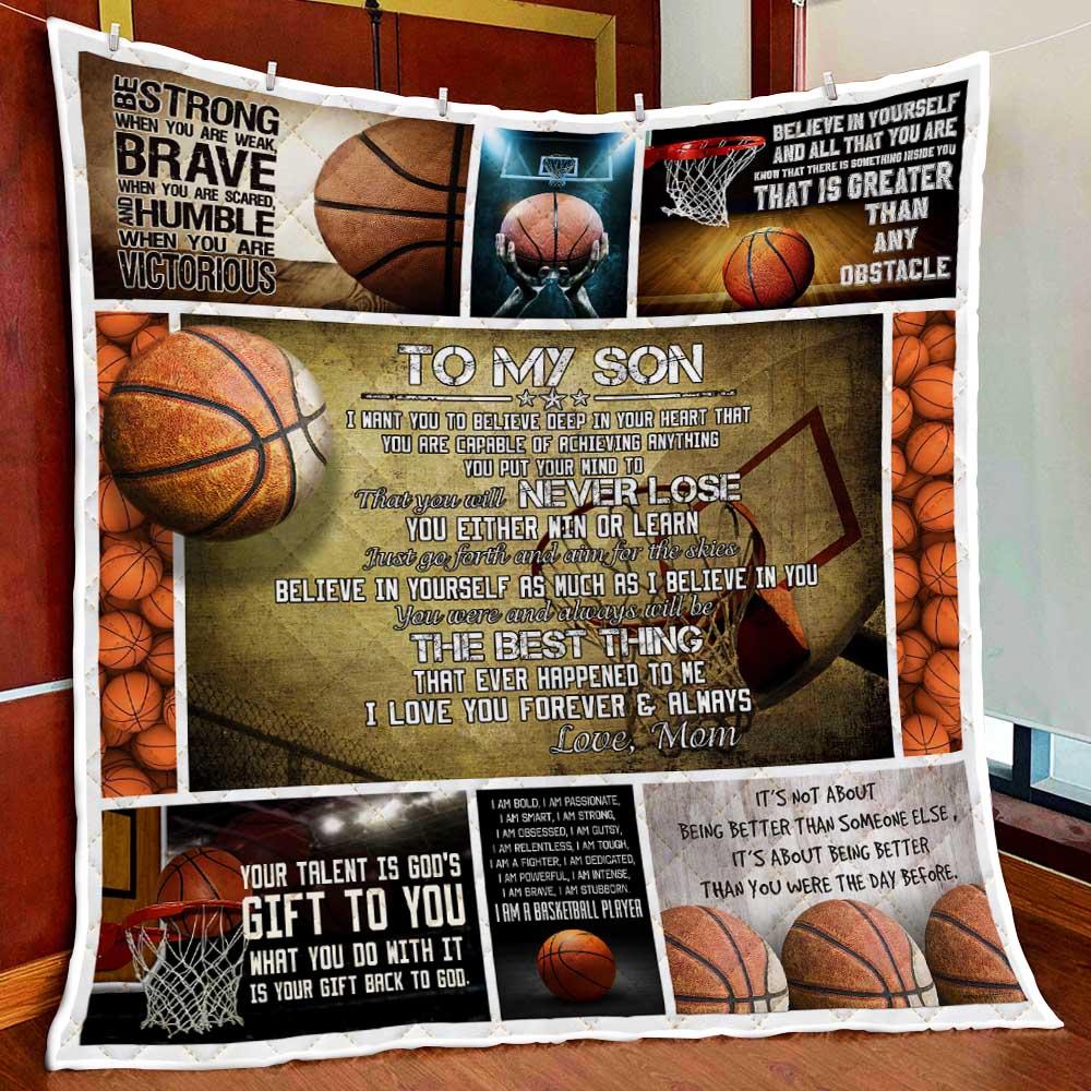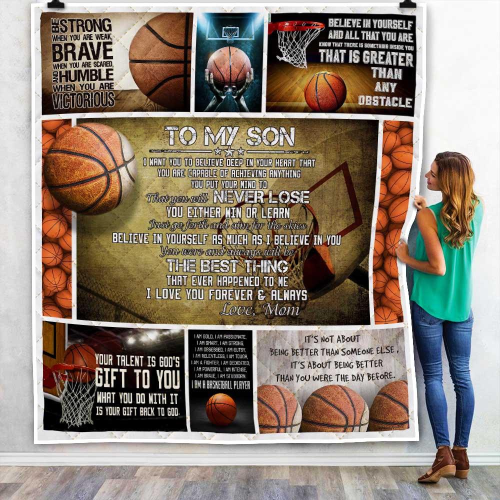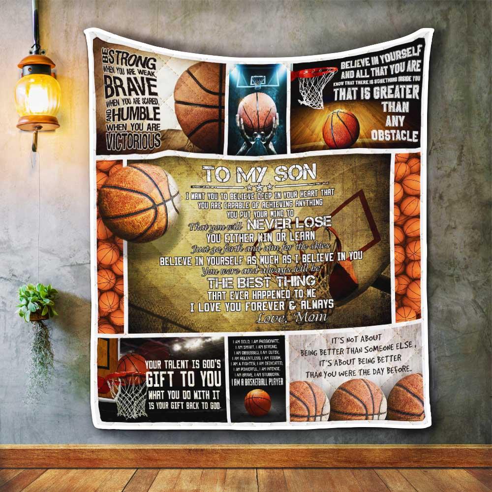 To My Son. Just Go Forth And Aim For The Skies. Basketball Quilt Blanket