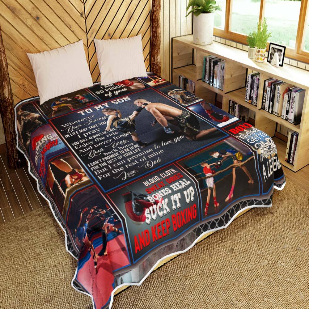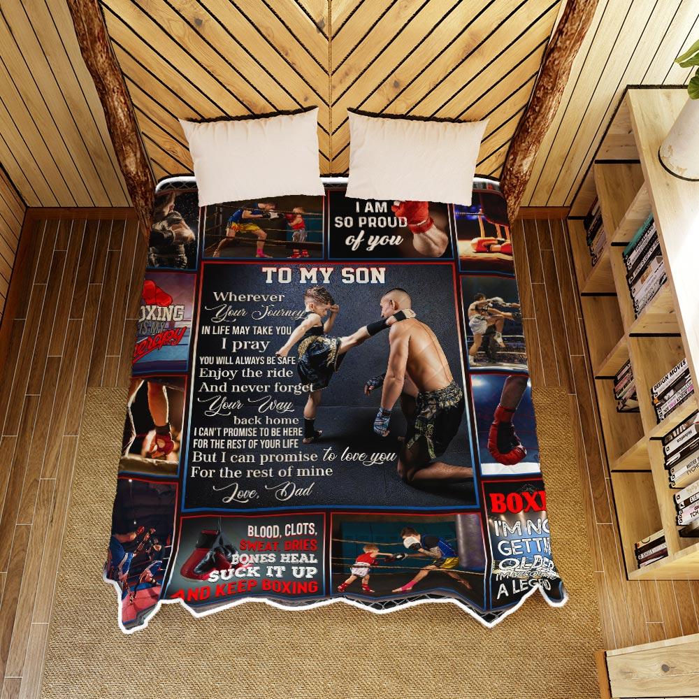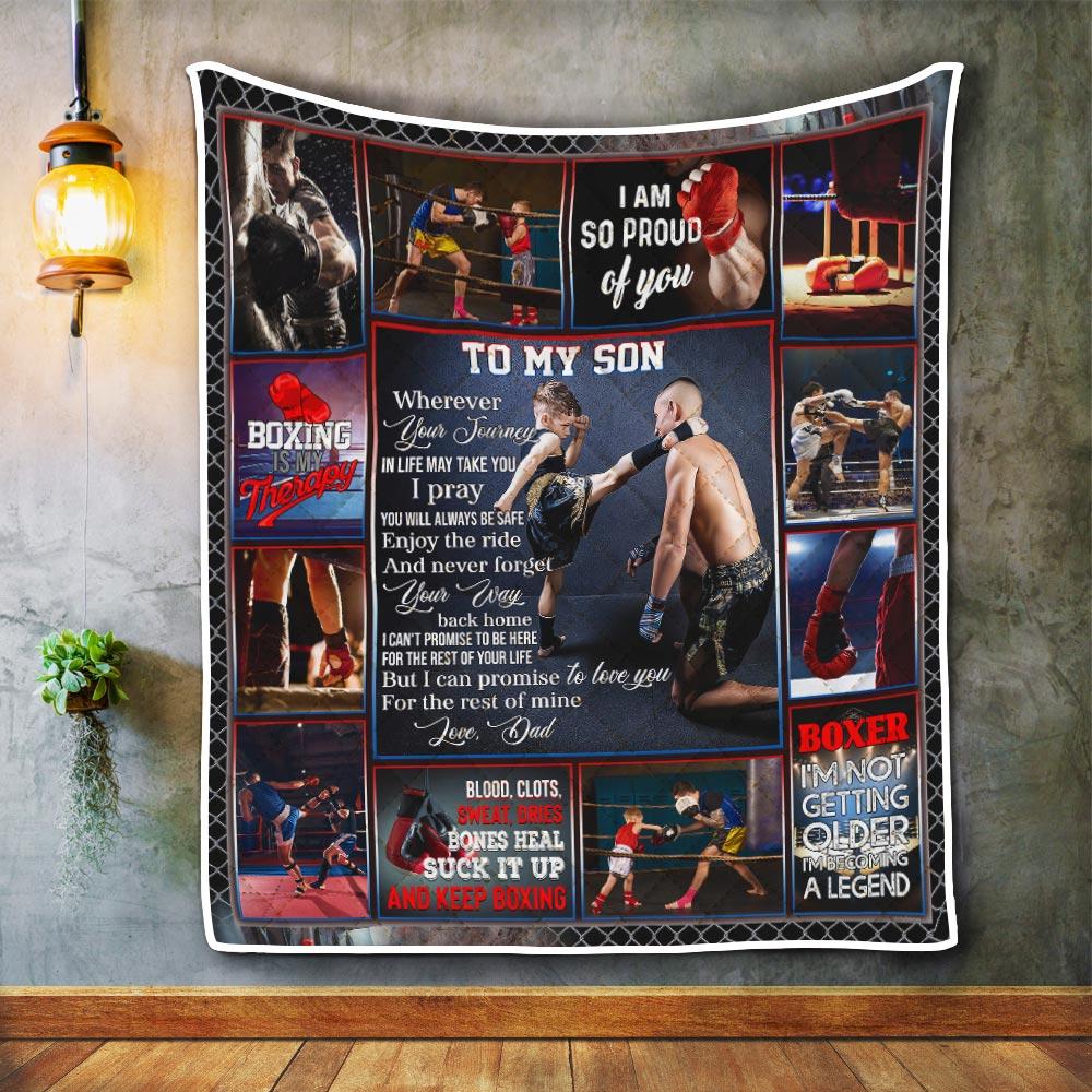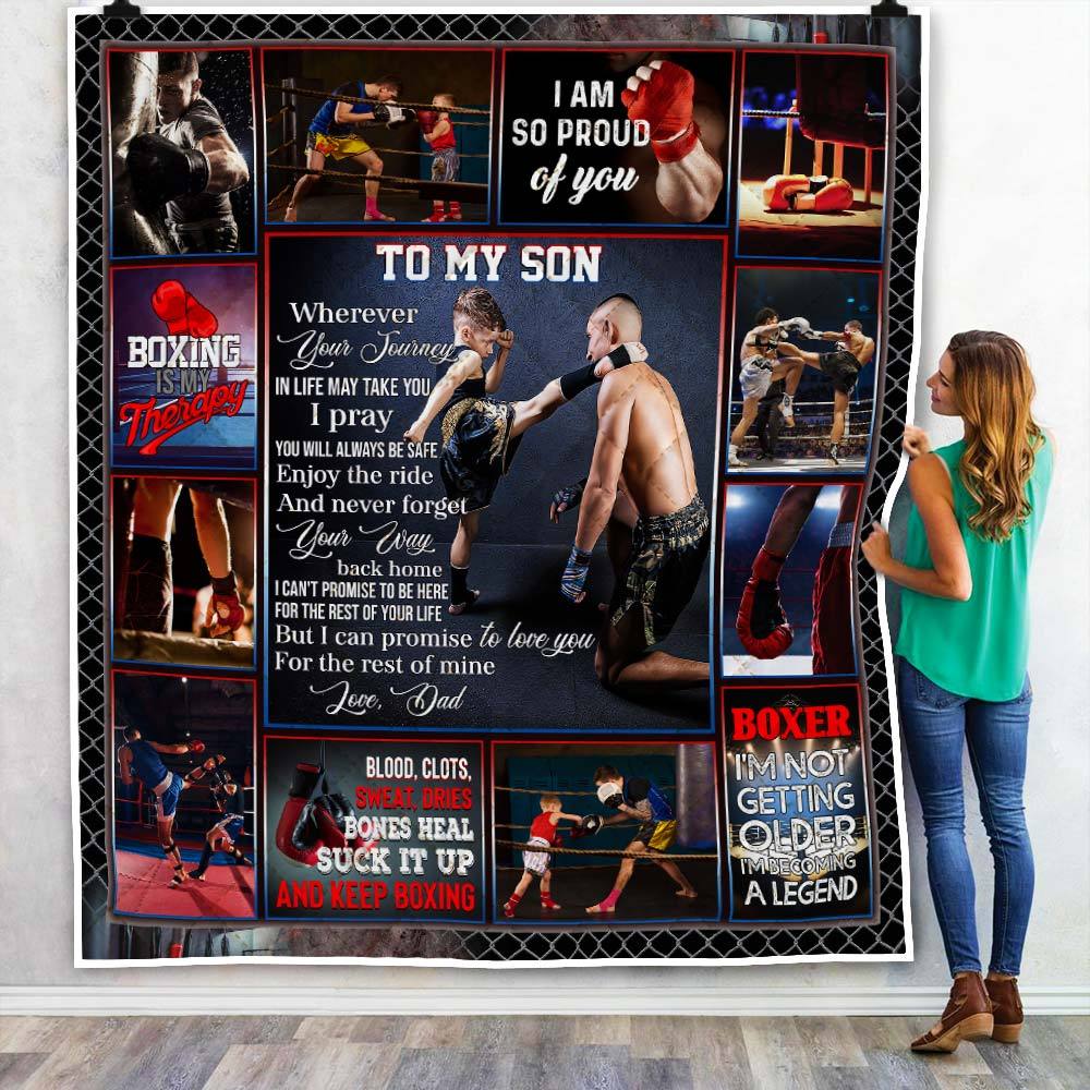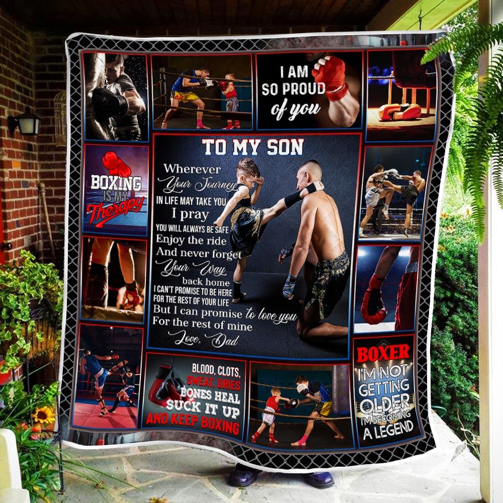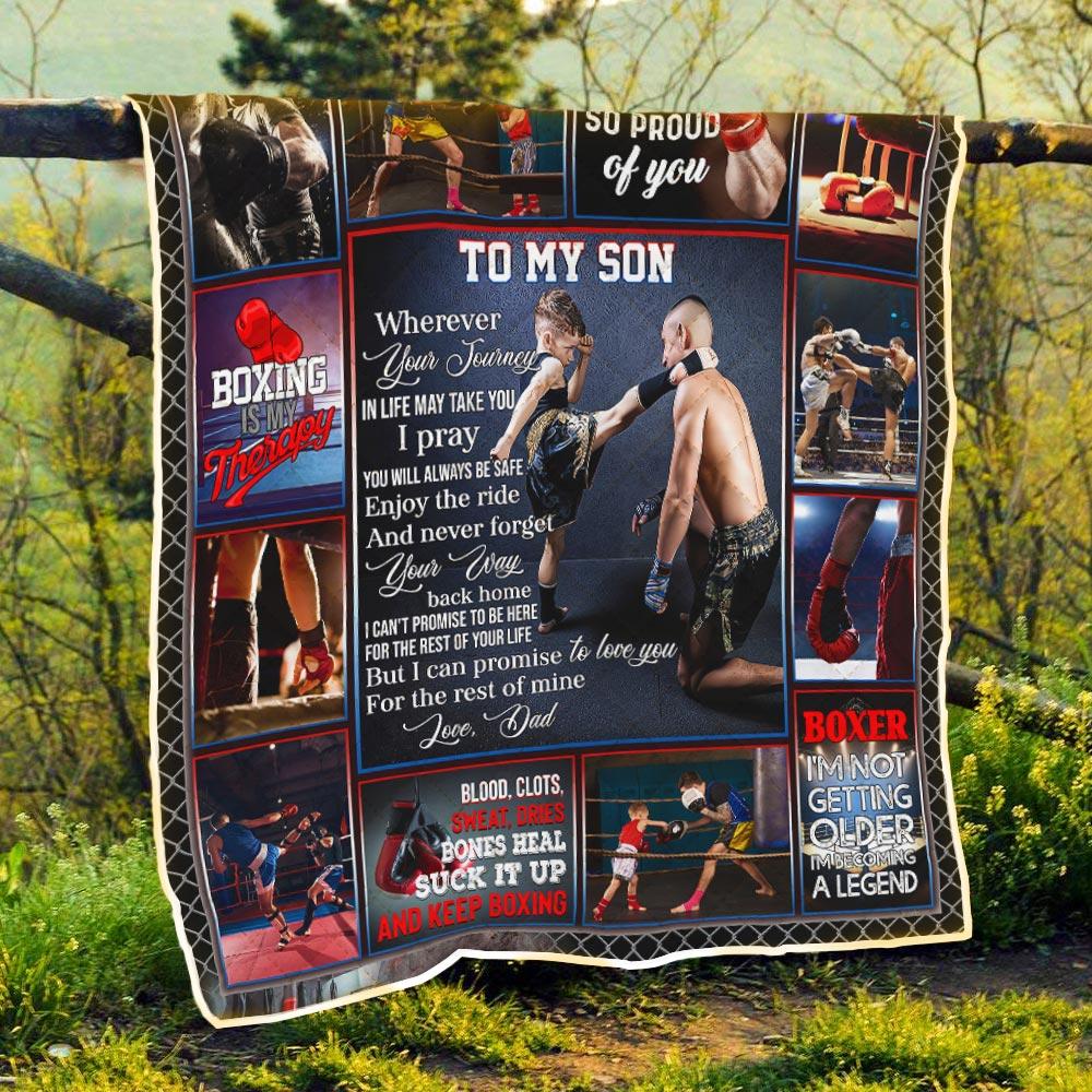 To My Son Wherever Your Journey In Life. Kickboxing Dad And Son Quilt Blanket