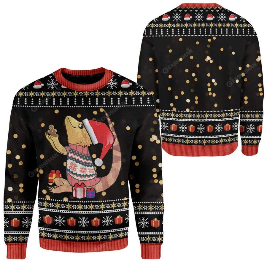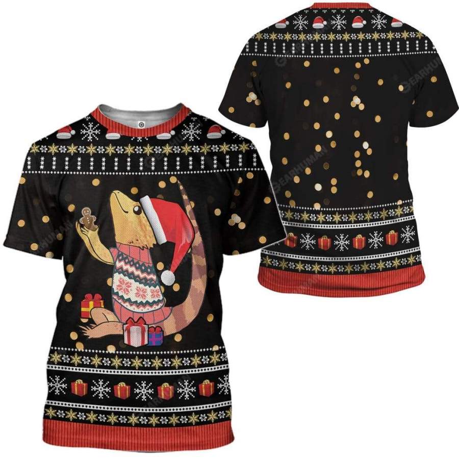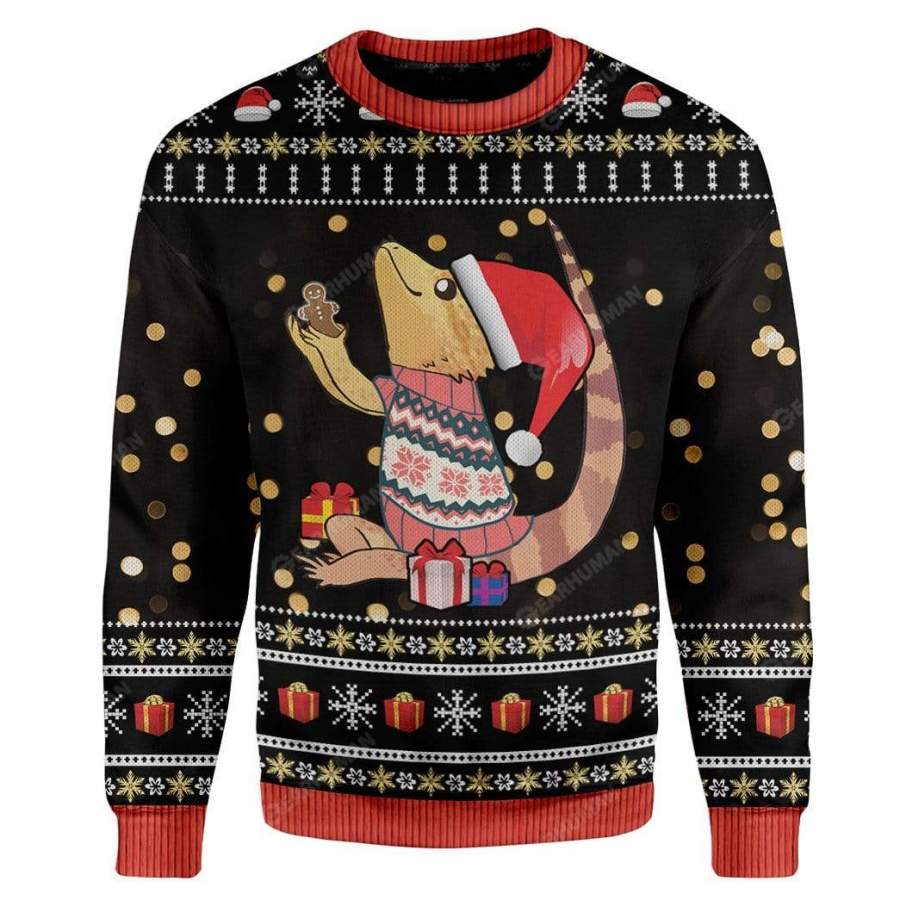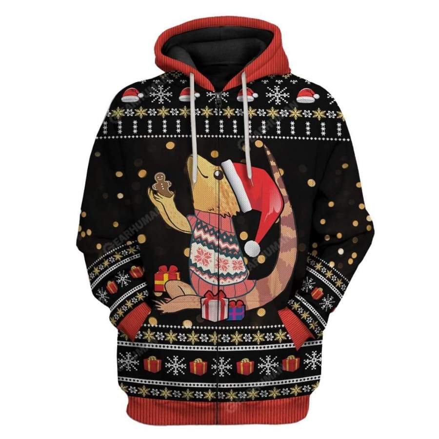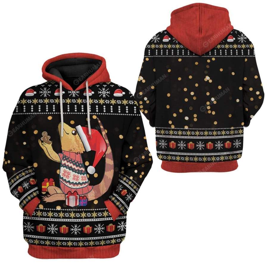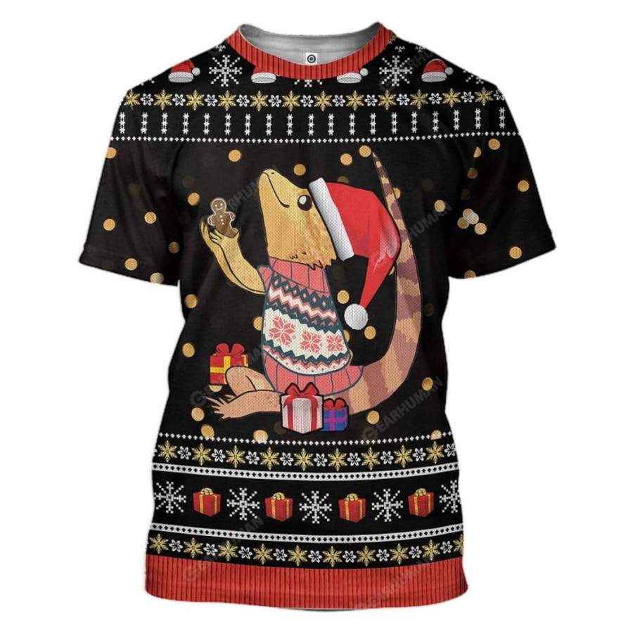 Ugly Bearded Dragon Holding Gingerbread Man Christmas Custom Tshirt Hoodies Apparel