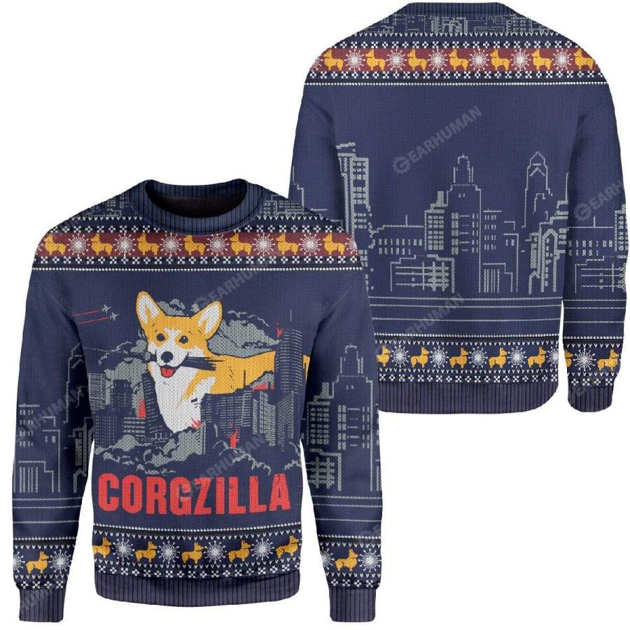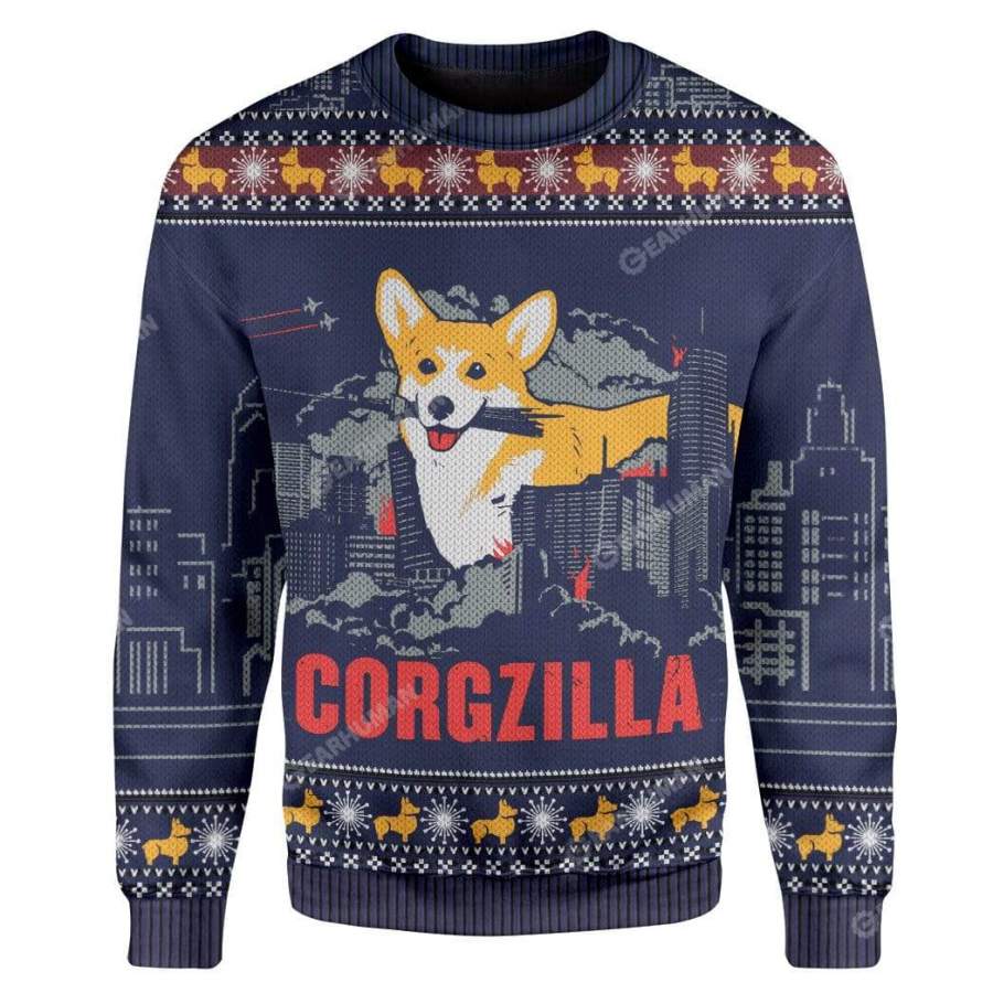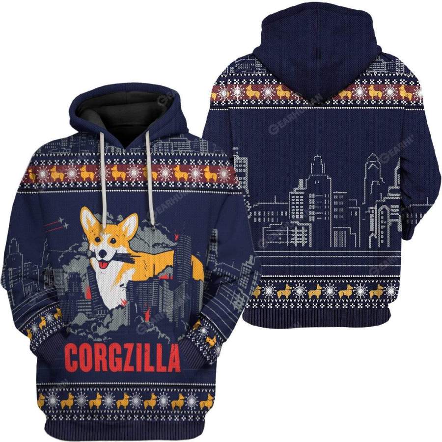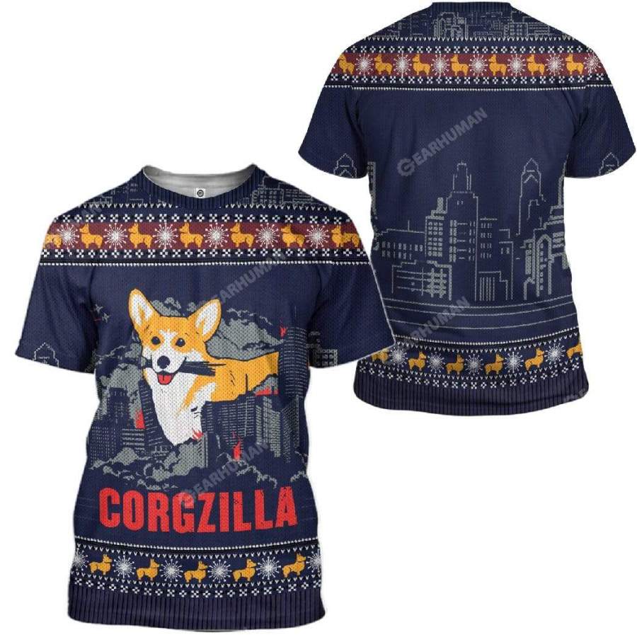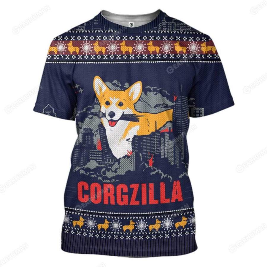 Ugly Corgzilla Christmas Custom Tshirt Hoodies Apparel