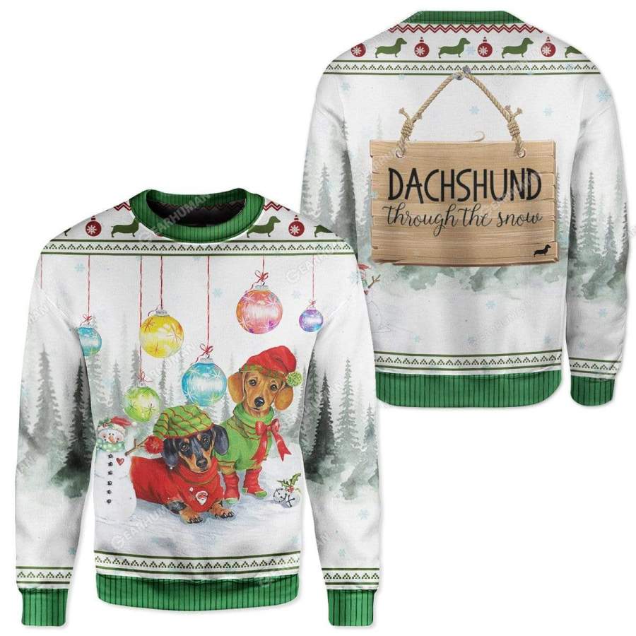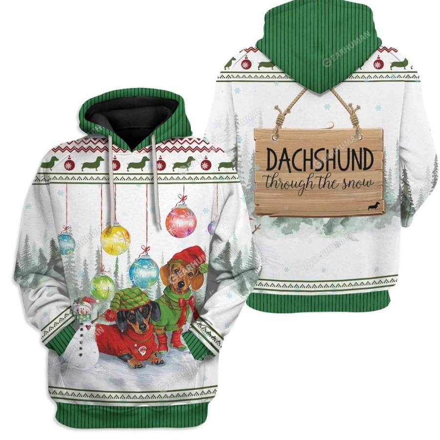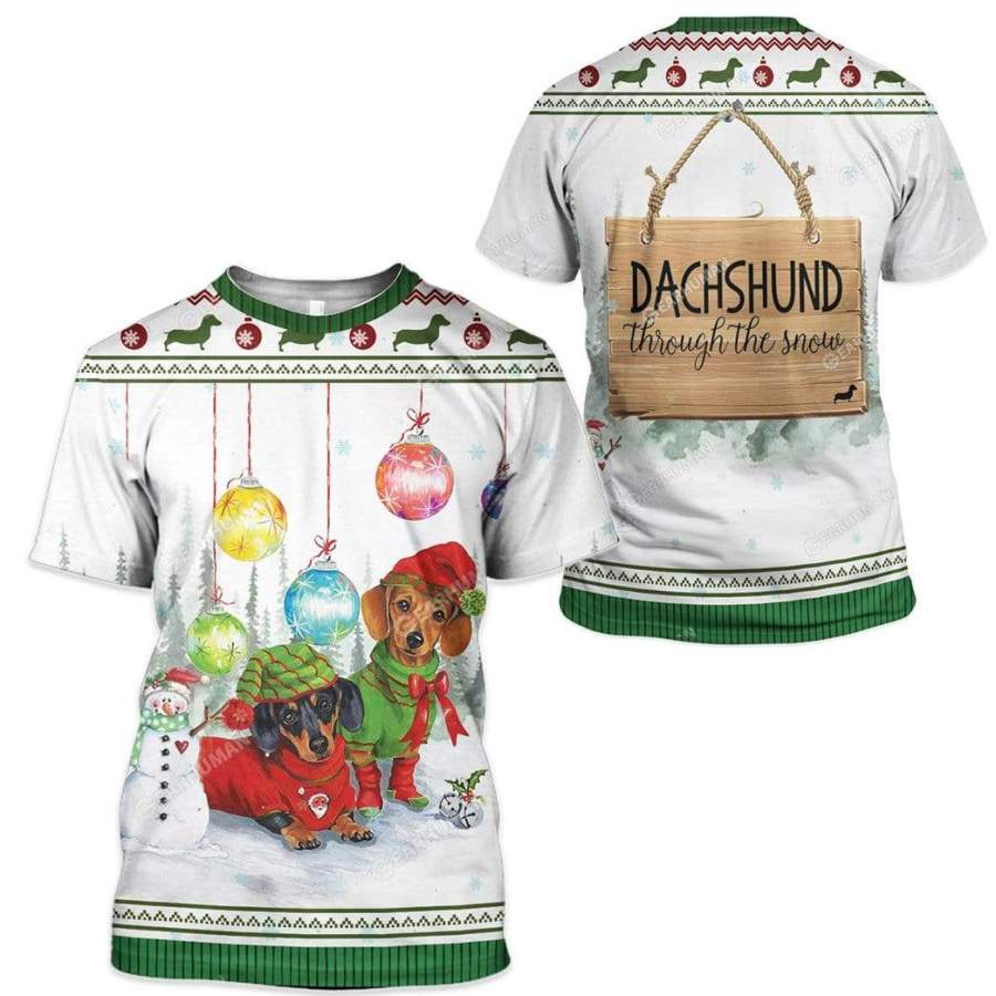 Ugly Dachshund Through The Snow Christmas Custom Tshirt Hoodies Apparel