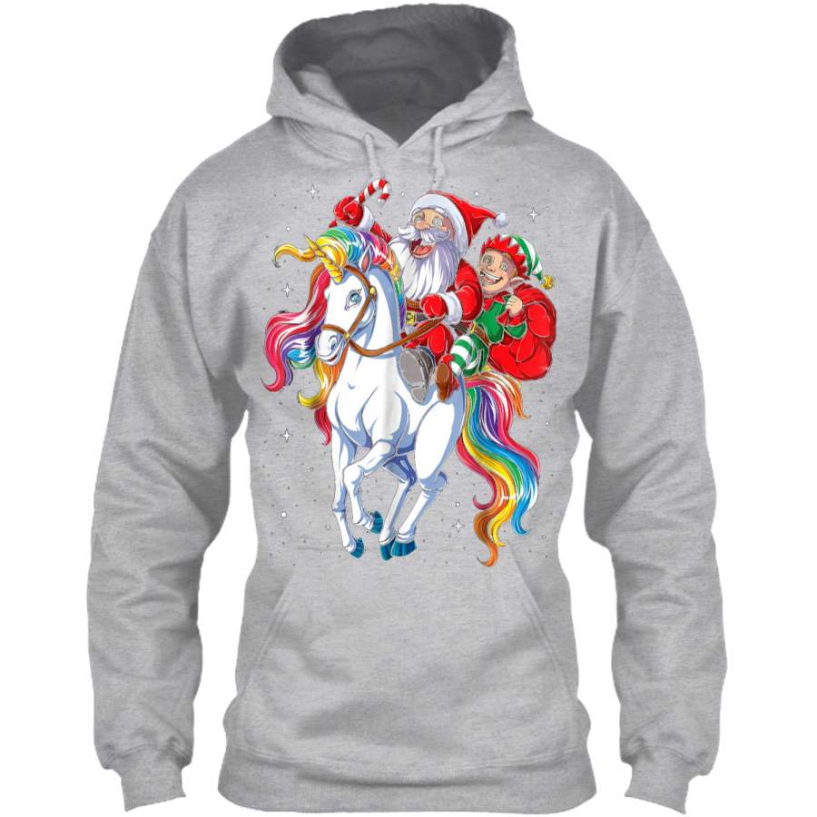 Unicorn Christmas Girls Santa Elf Kids Women Xmas Tees Pullover Hoodie 8 oz