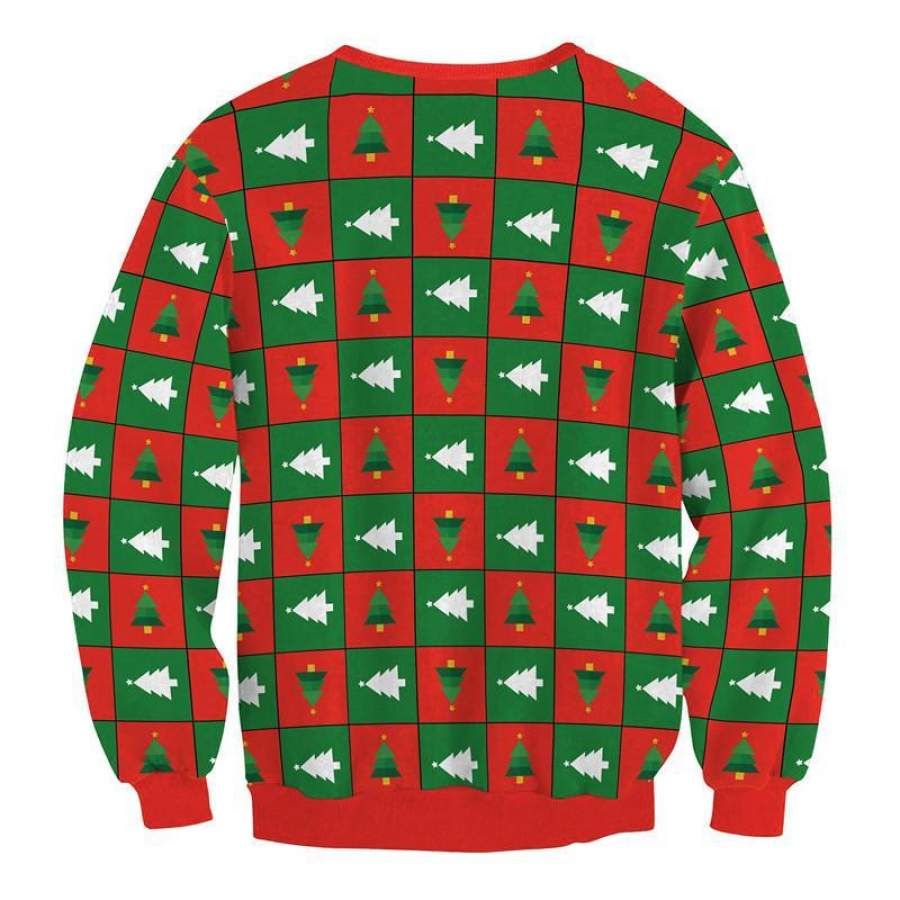 Unisex Christmas Print Crew-neck Hoodie Red Green Long Sleeve Adult Sweatshirt