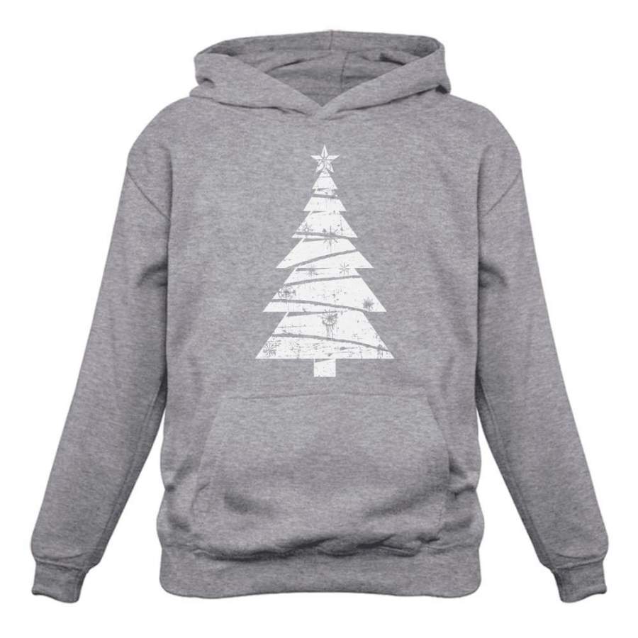 White Distressed Christmas Tree Women Hoodie