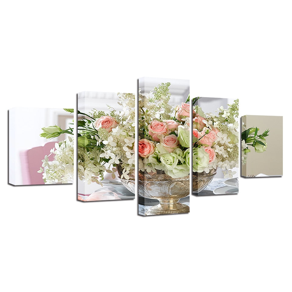White Pink Flowers Bouquet 5 Piece Hd Multi Panel Canvas Wall Art Frame