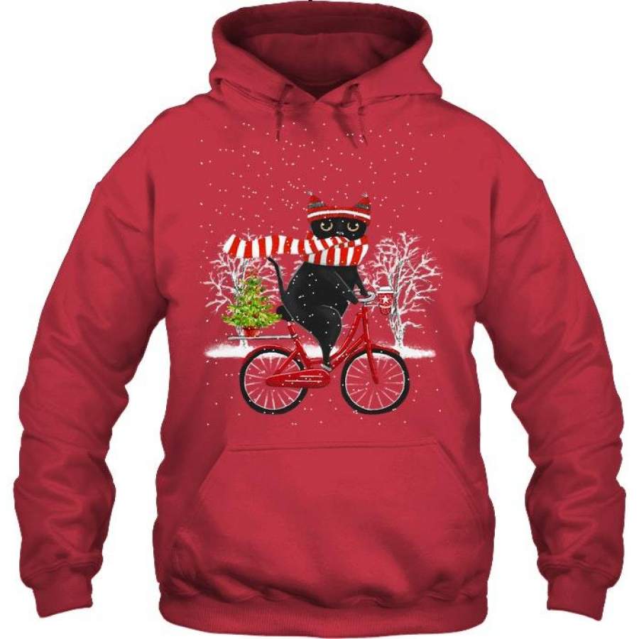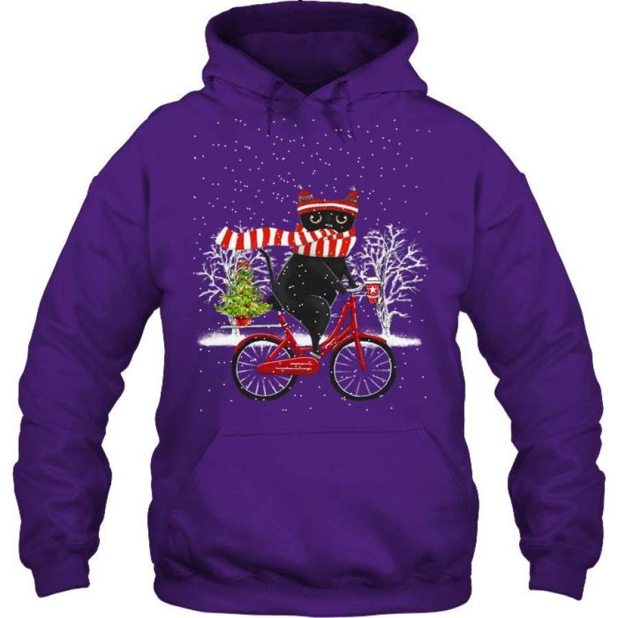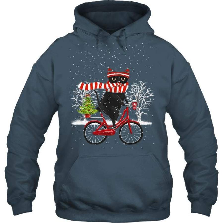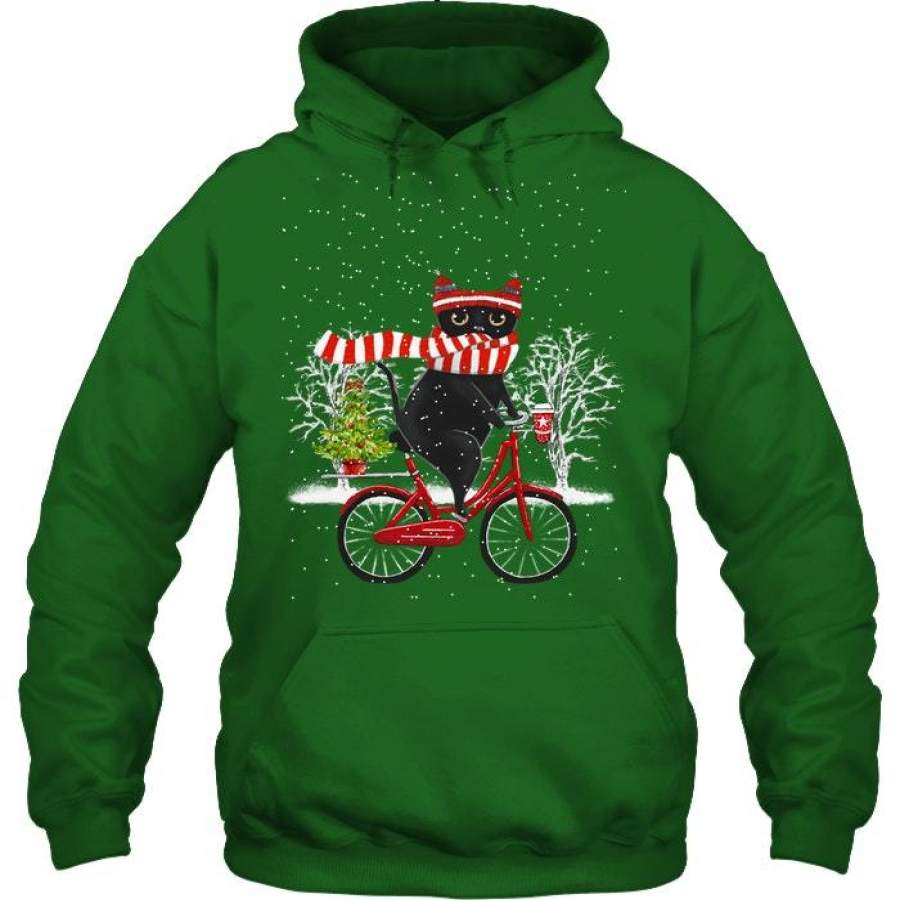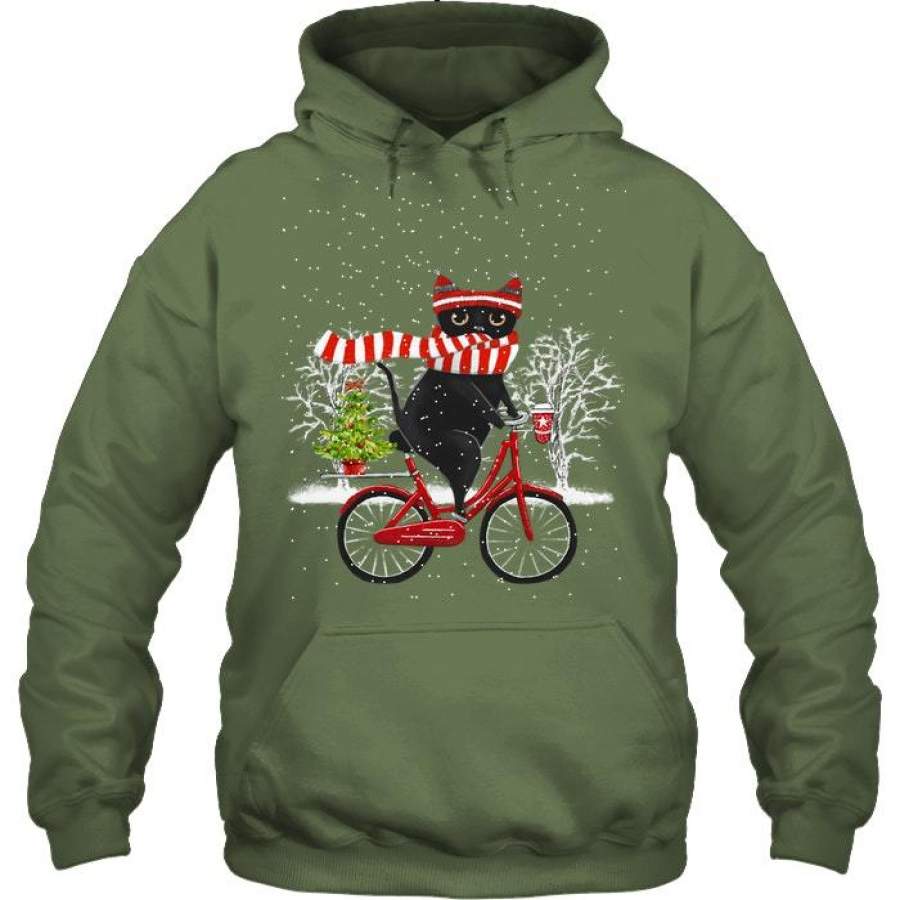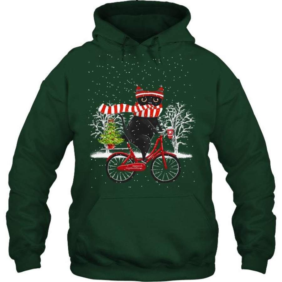 Winter Cat Riding Bicycle Christmas Gift Hoodie