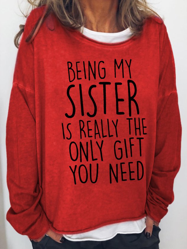 Women Being My Sister Is Really The Only Gift You Need Crew Neck Long Sleeve Top