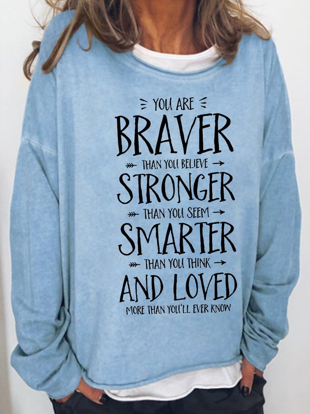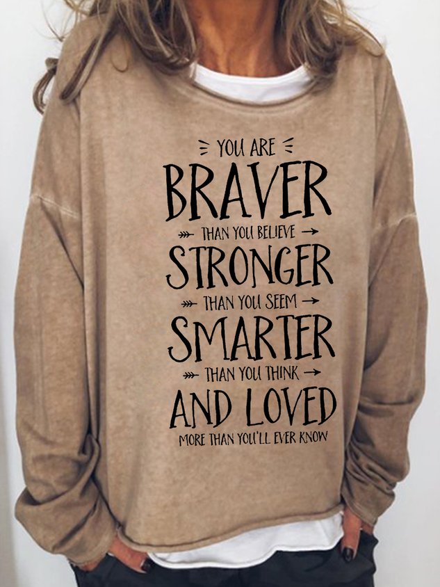 Women Braver Stronger Smarter And Loved Regular Fit Crew Neck Casual Long Sleeve Top