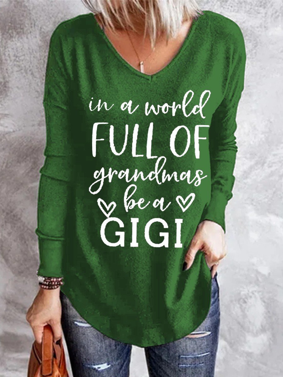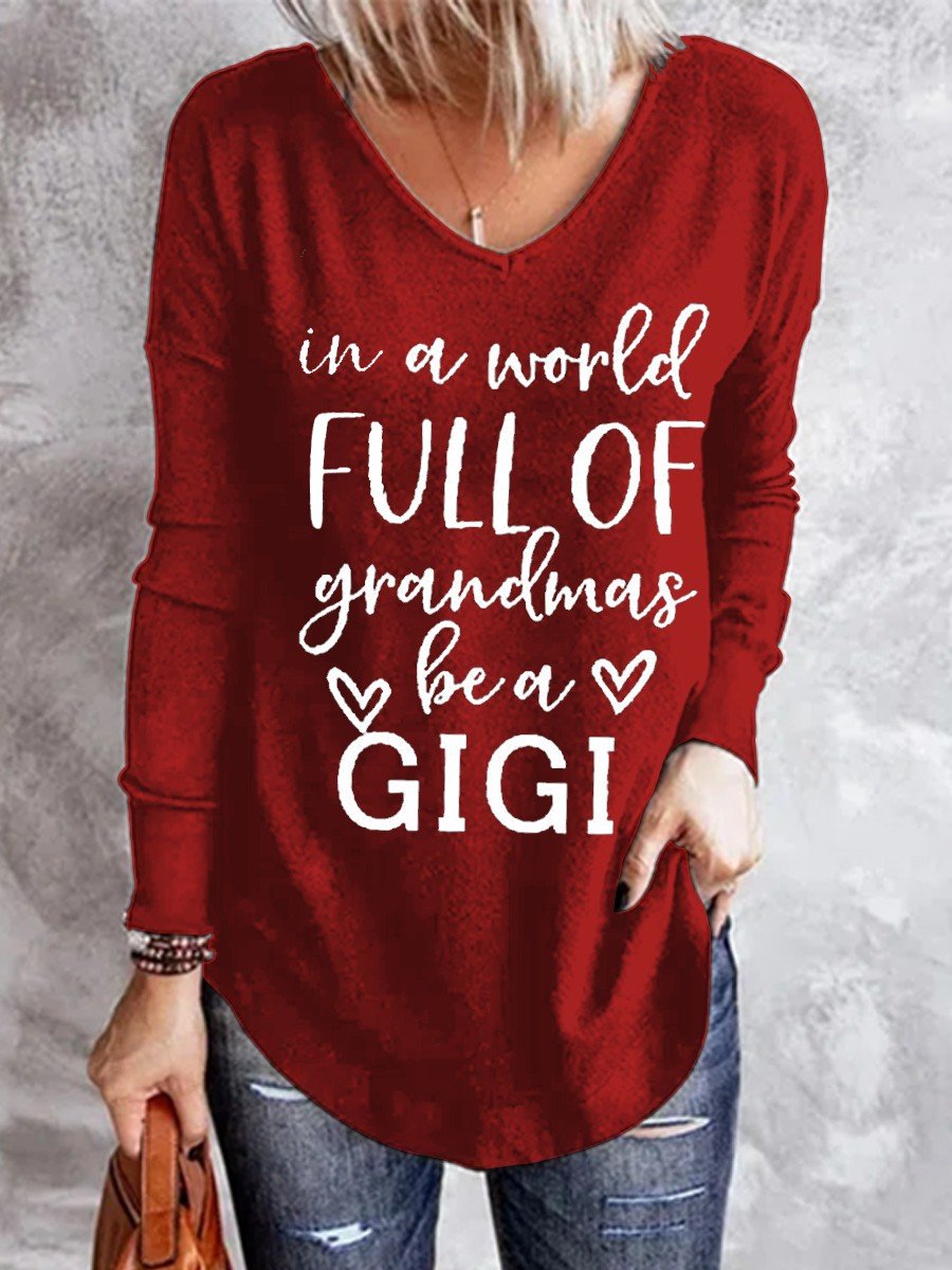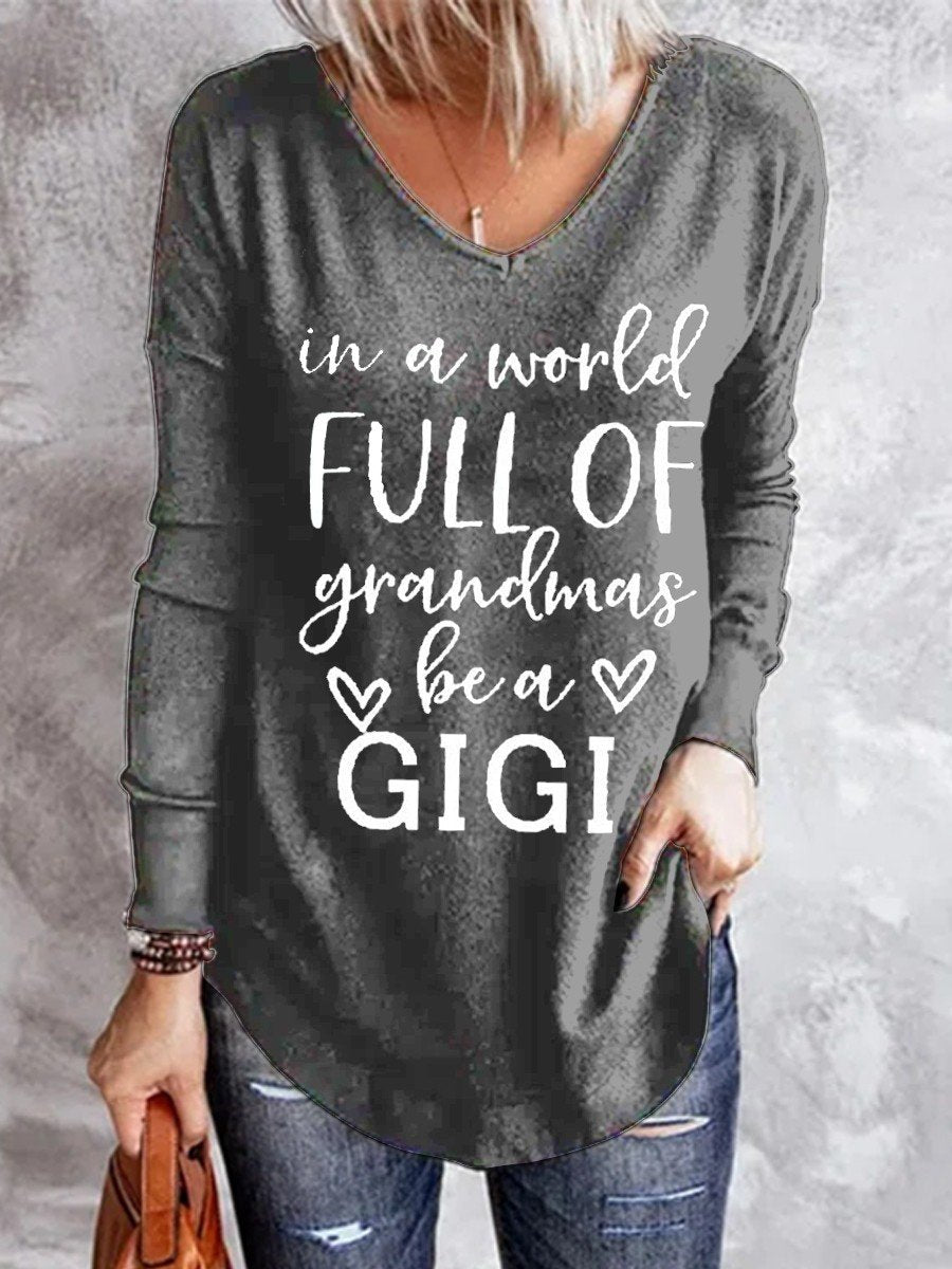 Women In A World Full Of Grandmas Be A Gigi V-Neck Long Sleeve Top