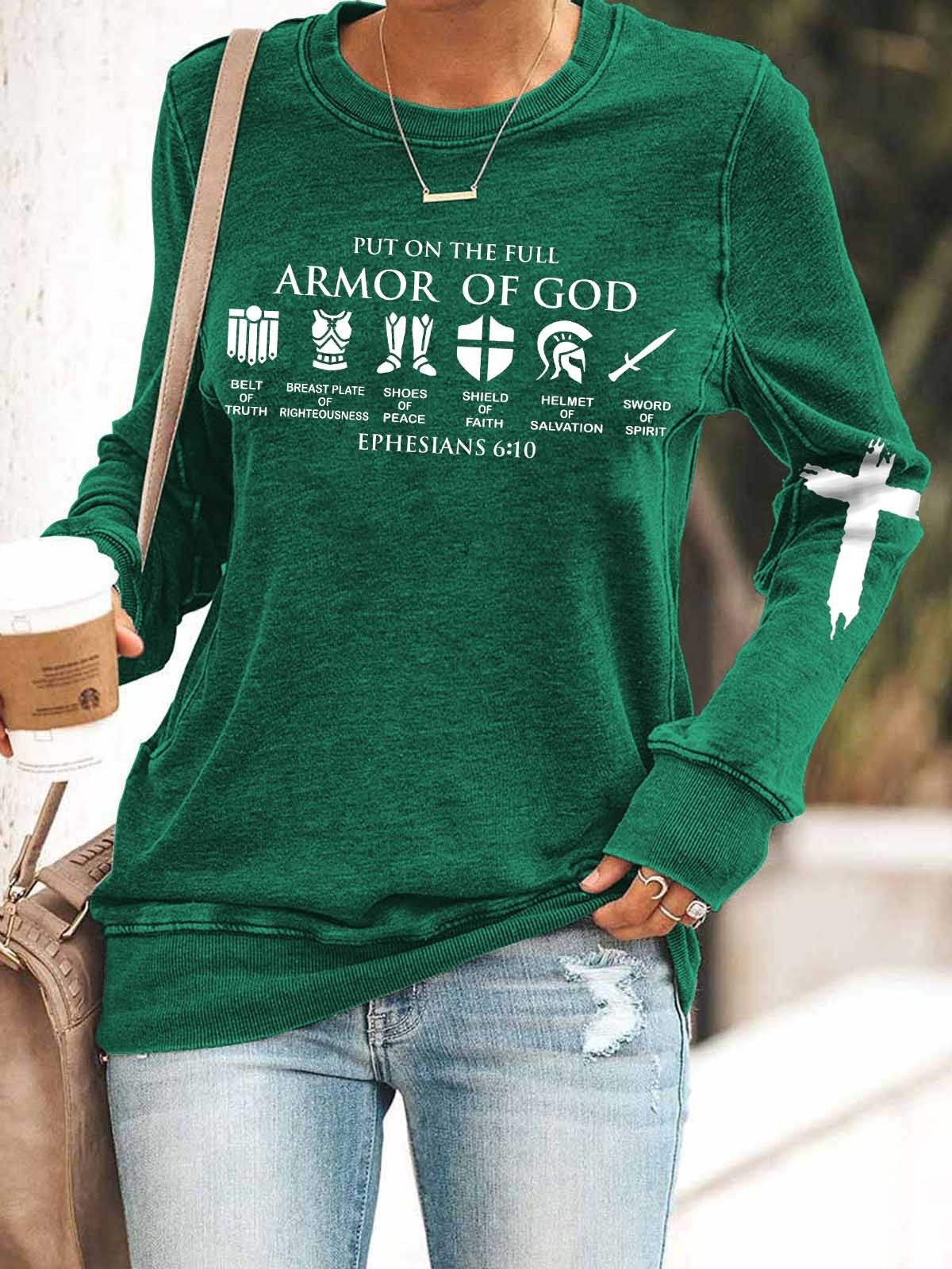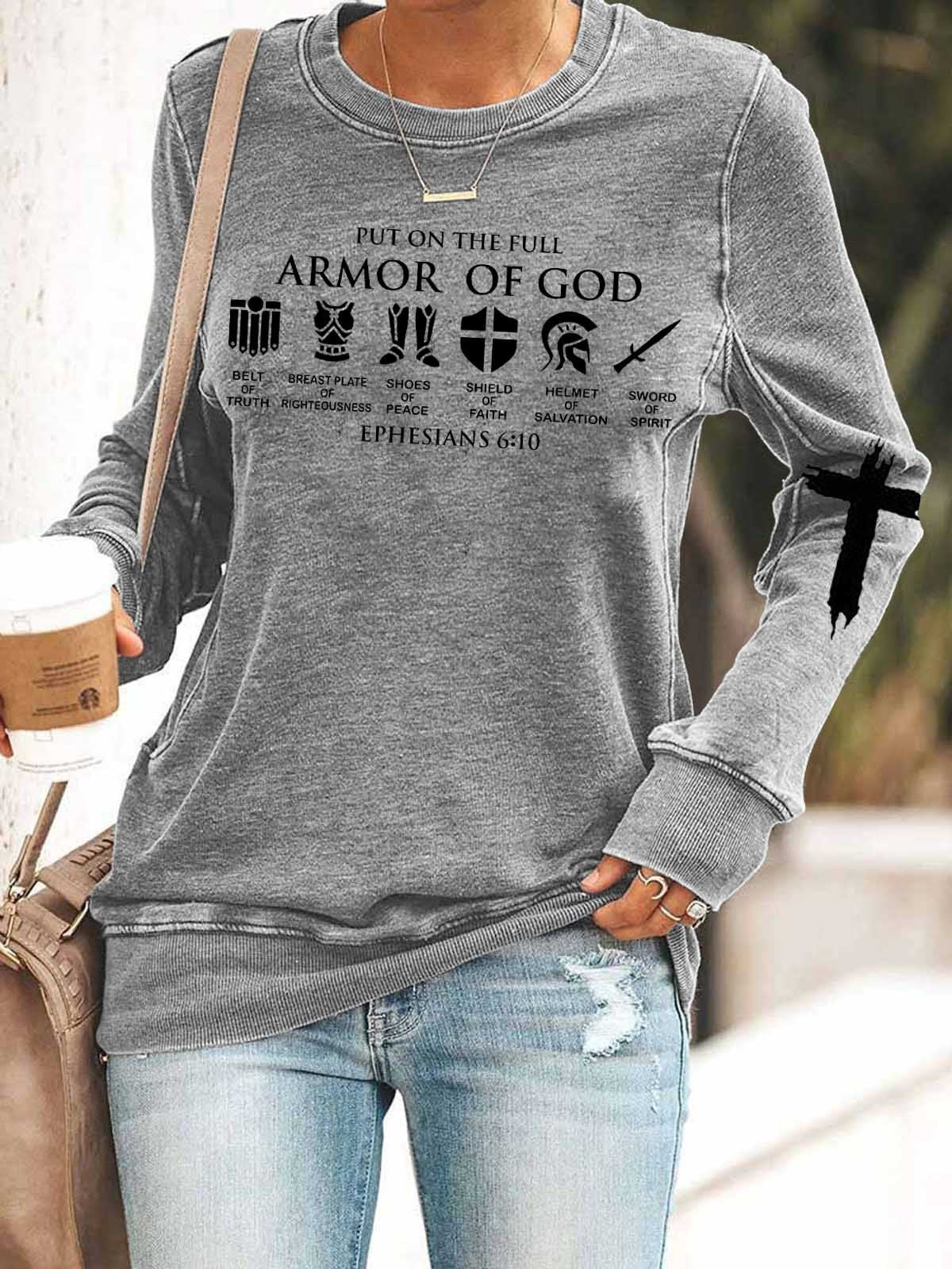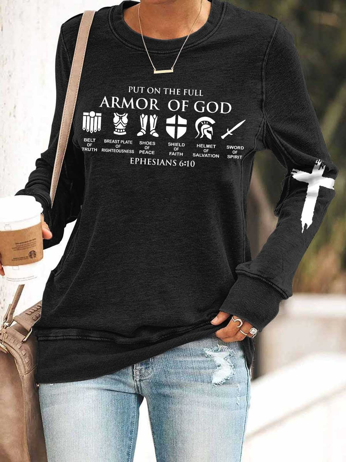 Women Put On The Full Armor Of God Print Long Sleeve Top