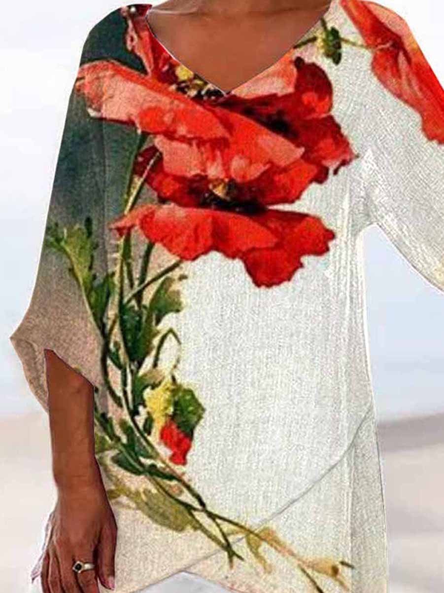 Women’S Flower Printed Long Sleeve V-Neck Top