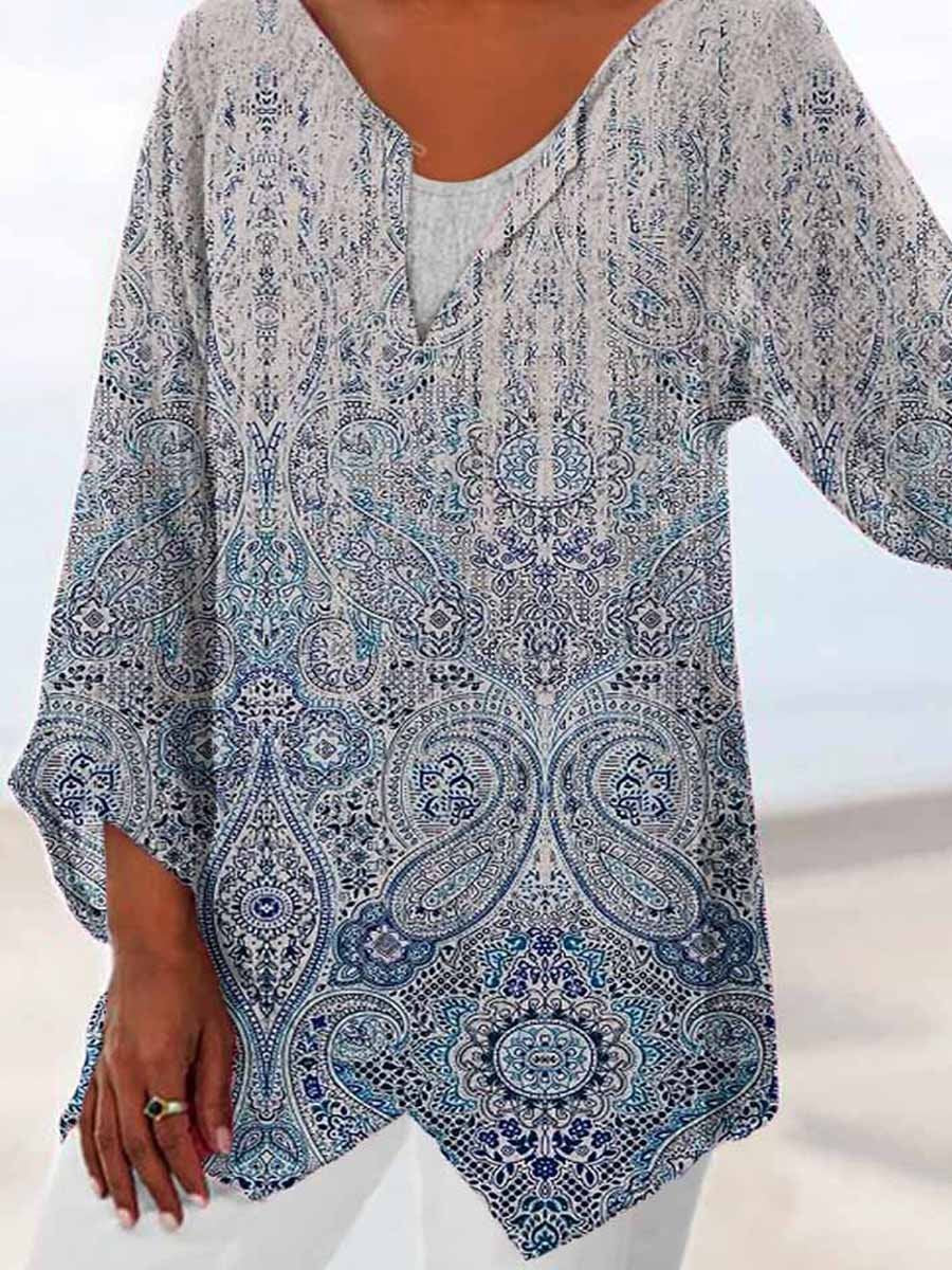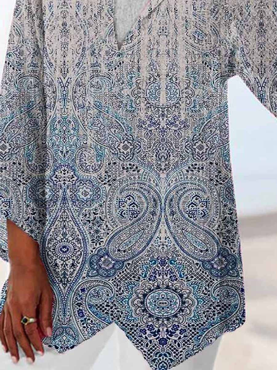 Women’S Midland Printed Long Sleeve V-Neck Top
