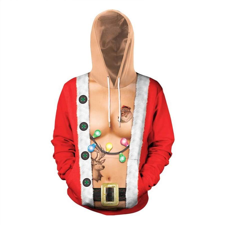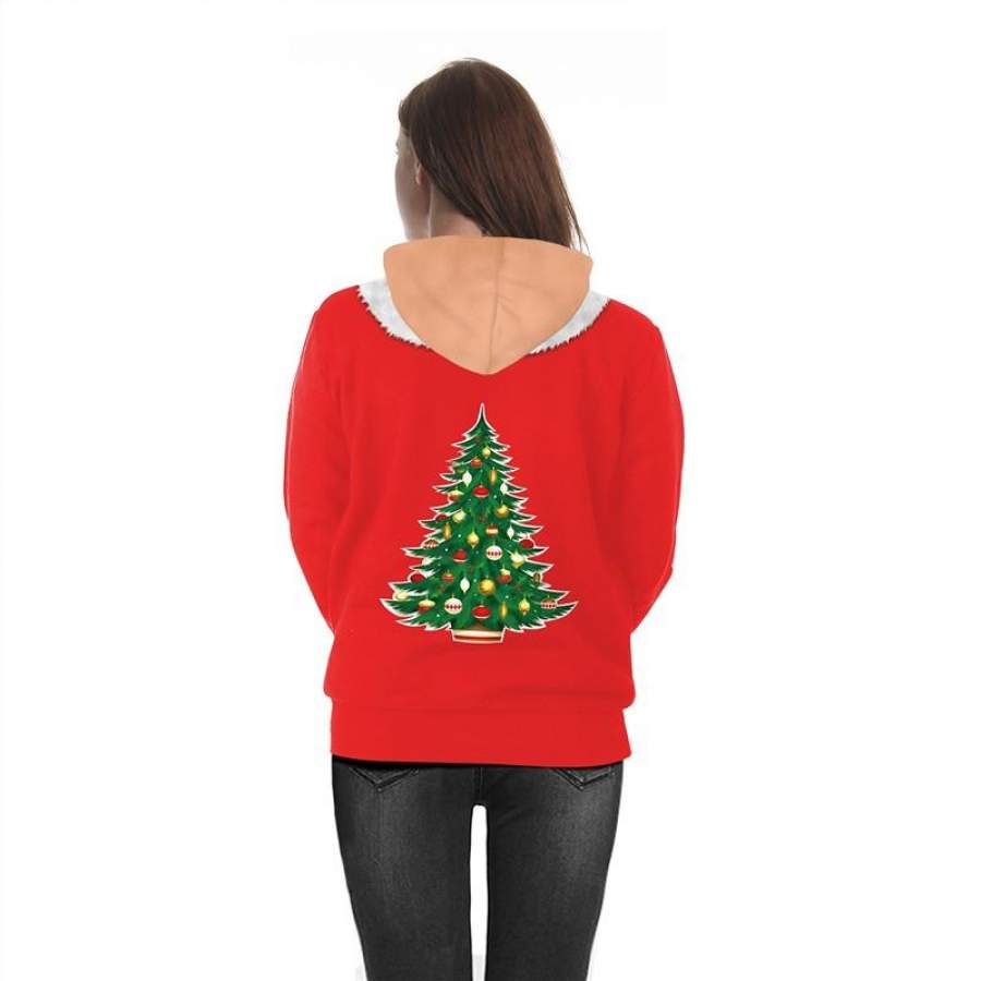 Womens Red Hoodies 3D Graphic Printed Merry Christmas Bell Pullover
