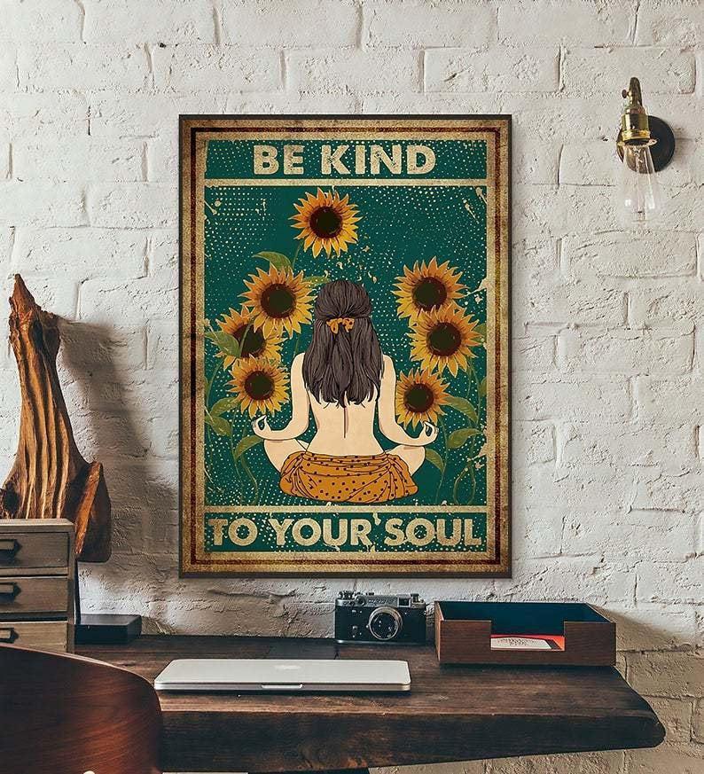 Yoga Poster- Be Kind To Your Soul – Yoga Prints Poster – Vintage Poster – Wall Decoration – Signs For Home – Best Gifts Ever – Yoga Wall Art