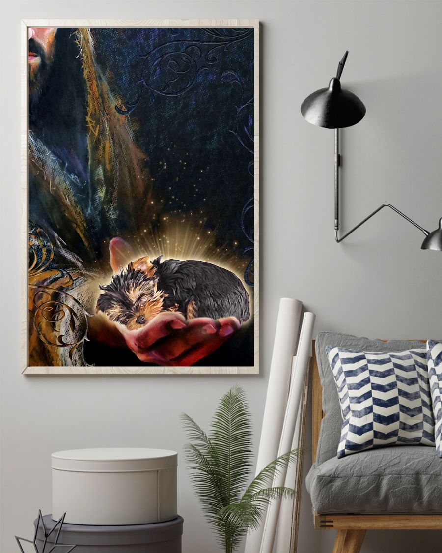 Yorkshire Terrier In God Hand Yorkie Lover Easter Canvas And Poster | Wall Decor Visual Art